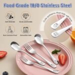 FOOD GRADE MATERIAL: These toddler utensils are made of 100% high-quality 18/0 stainless steel with mirror polish, ensuring non-toxic and not easy to rust, protecting your children’s health and safety, parents can buy with confidence. The kids silverware are sturdy and durable, dishwasher-safe, easy to clean, bringing you more convenience and peace of mind.