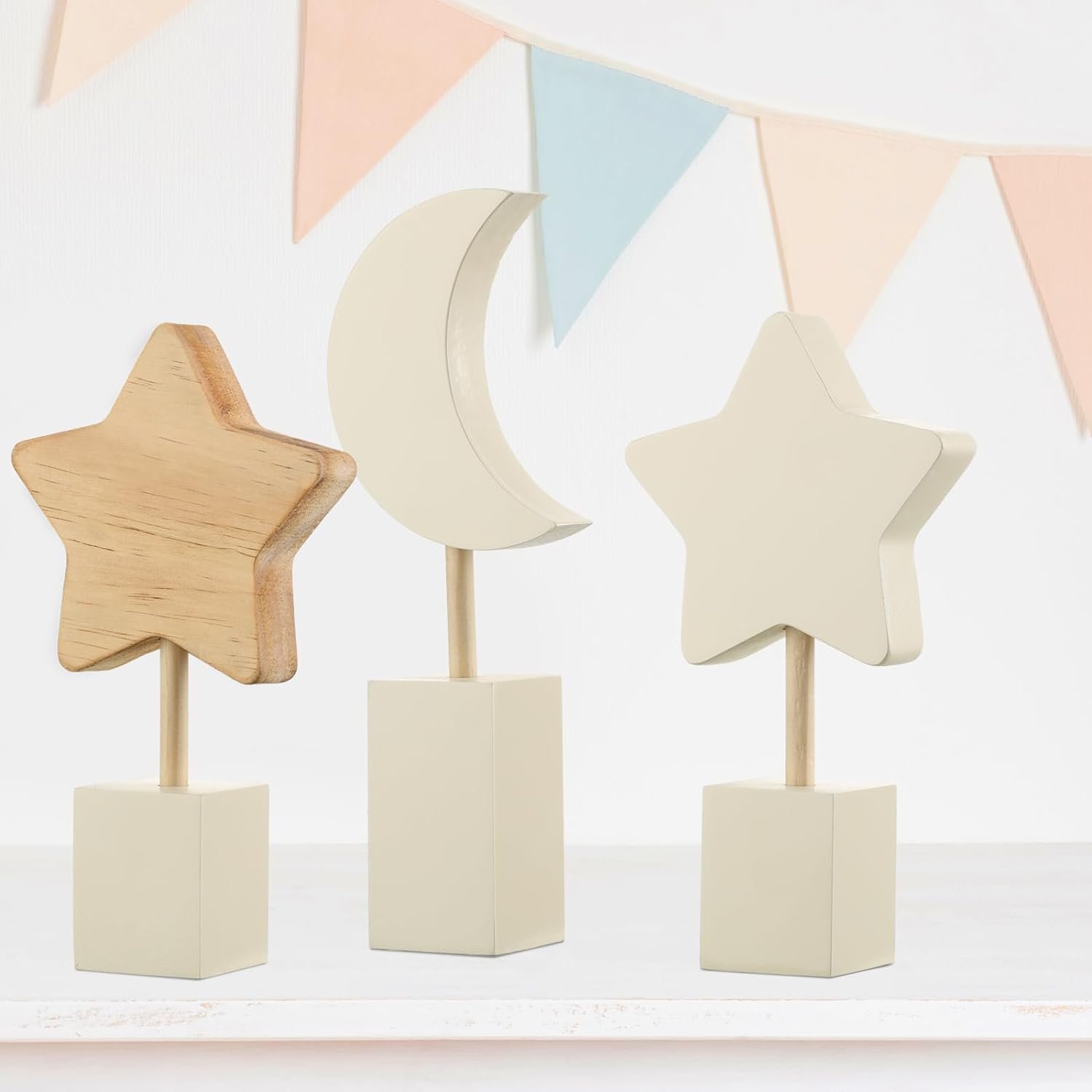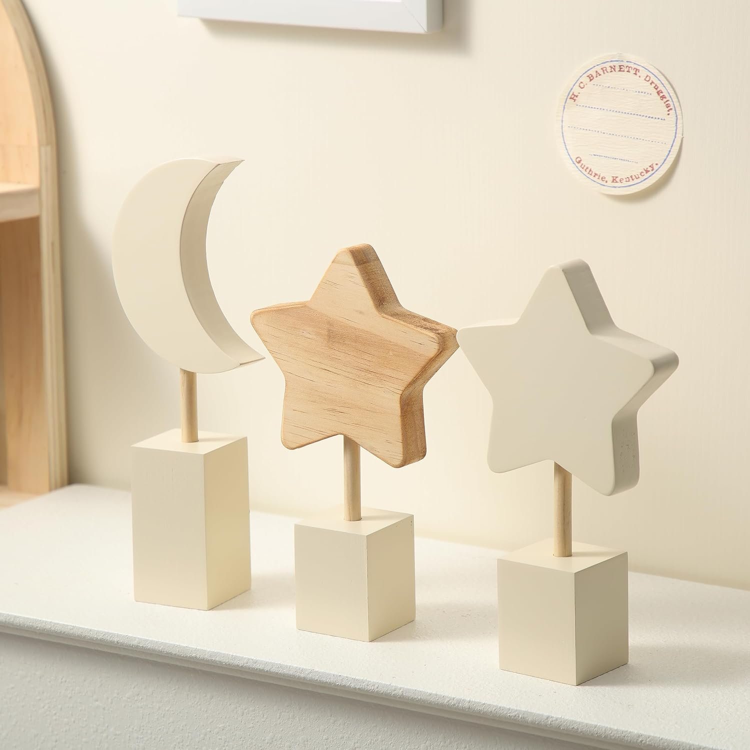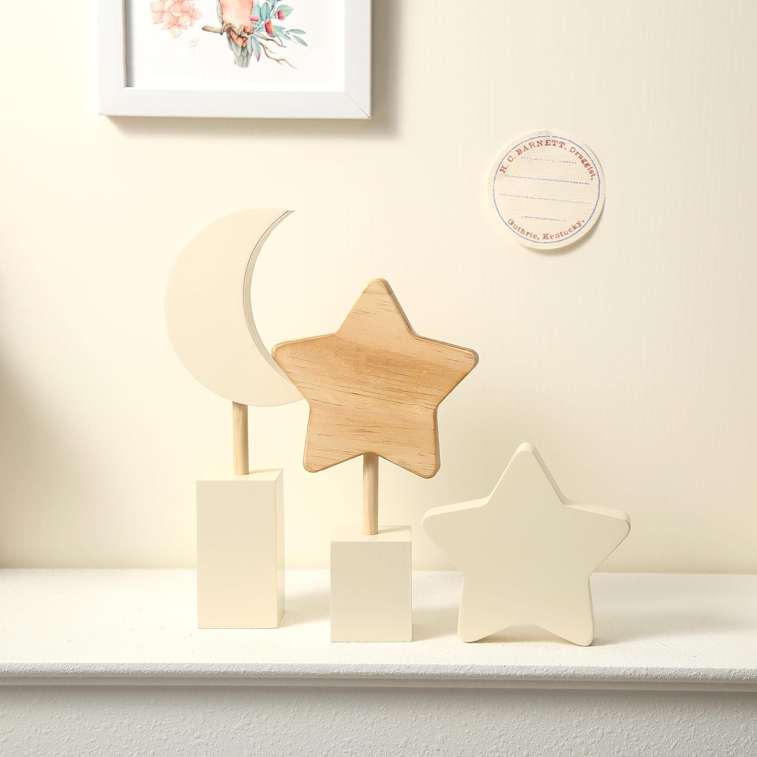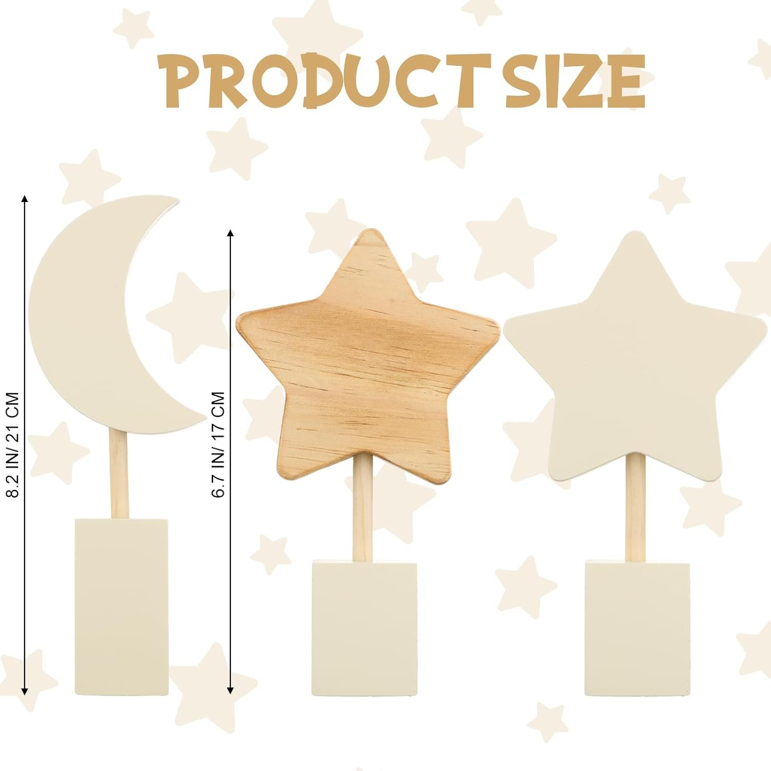 Ornament Set: our set includes 3 pieces of cute wall decors, 1 moon, and 2 stars; Each of them is carefully crafted to bring out their cuteness and charm; These charming patterns will bring a naturally playful feel to the space; They can transform your nursery or child’s room into an adorable star and moon themed place