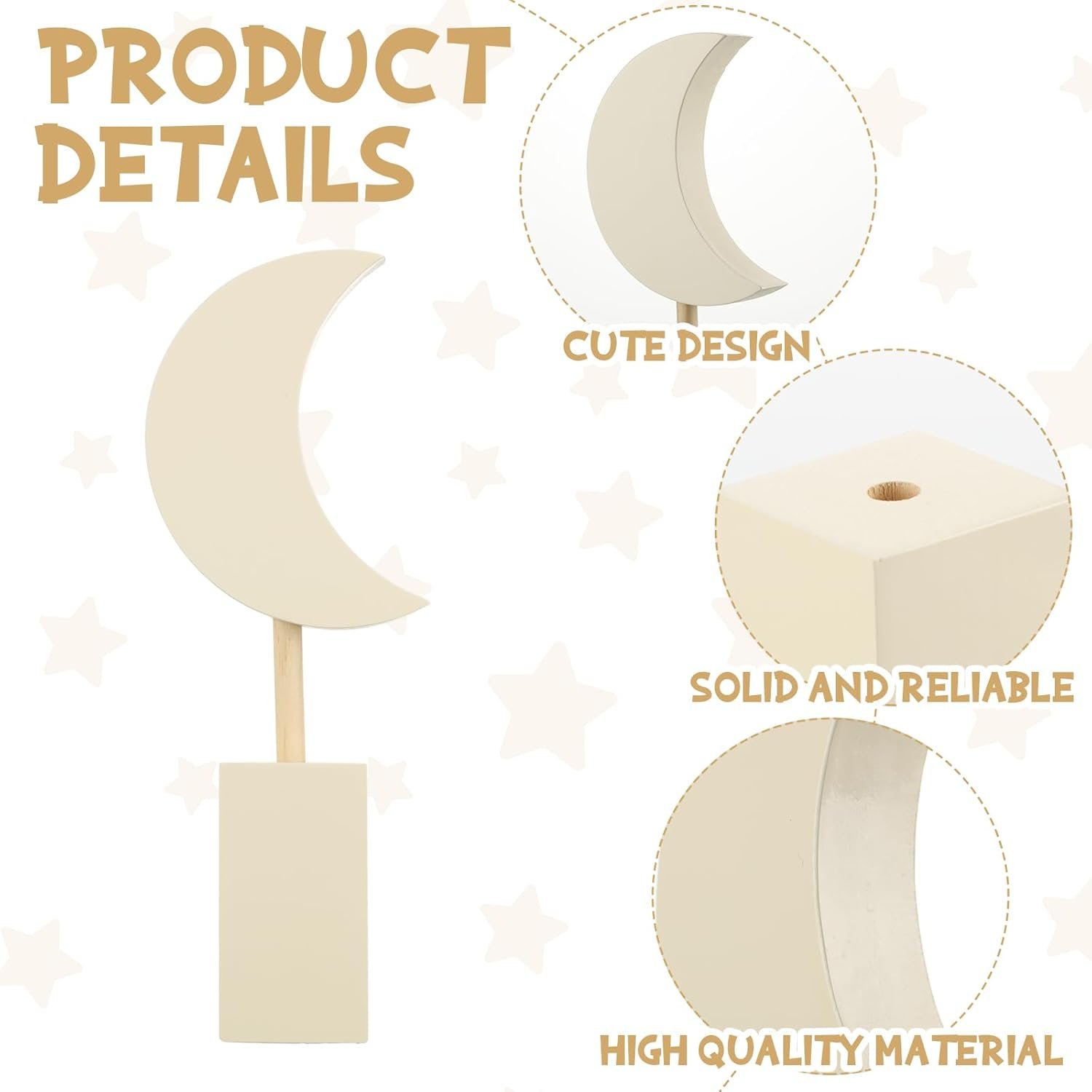 Suitable Size: each nursery decor is carefully sized; The moon ornament measures about 8.2 inches/ 21 cm tall, the star ornament measures about 6.7 inches/ 17 cm tall; They are just the right size to be applied to a variety of displays such as hanging on the wall, on a shelf, or as a table centerpiece