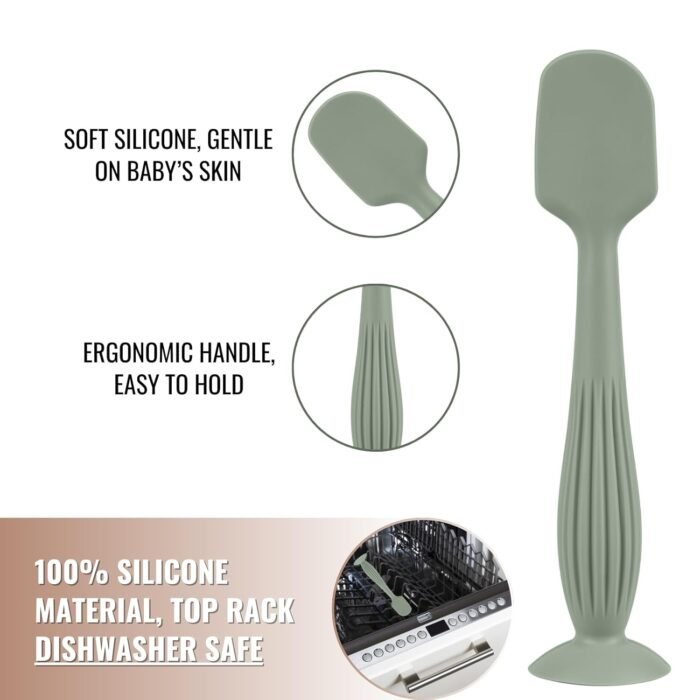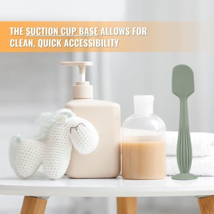 Suction cup base – the built-in suction bottom allows the spatula to stand up on your changing table so it doesn’t accidentally fall over and get cream everywhere.