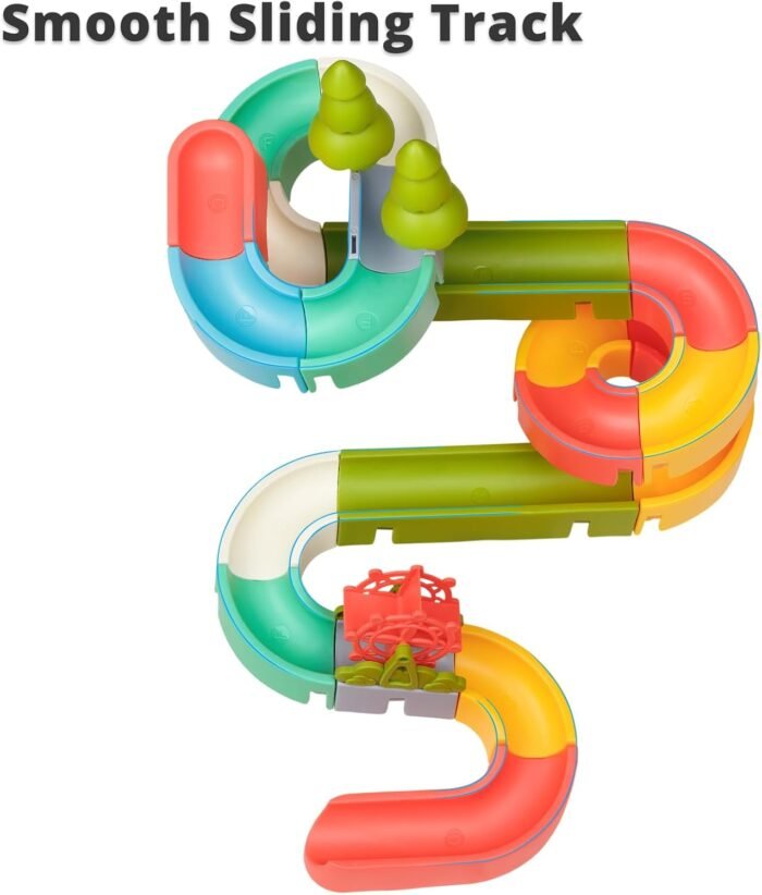 【SMOOTH SLIDING TRACK】The pieces are connected so well when combined together. That makes the track so smooth and you can see sliding finished in seconds. You baby boy might try to grab before it falls into water
