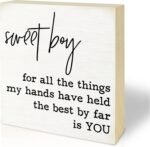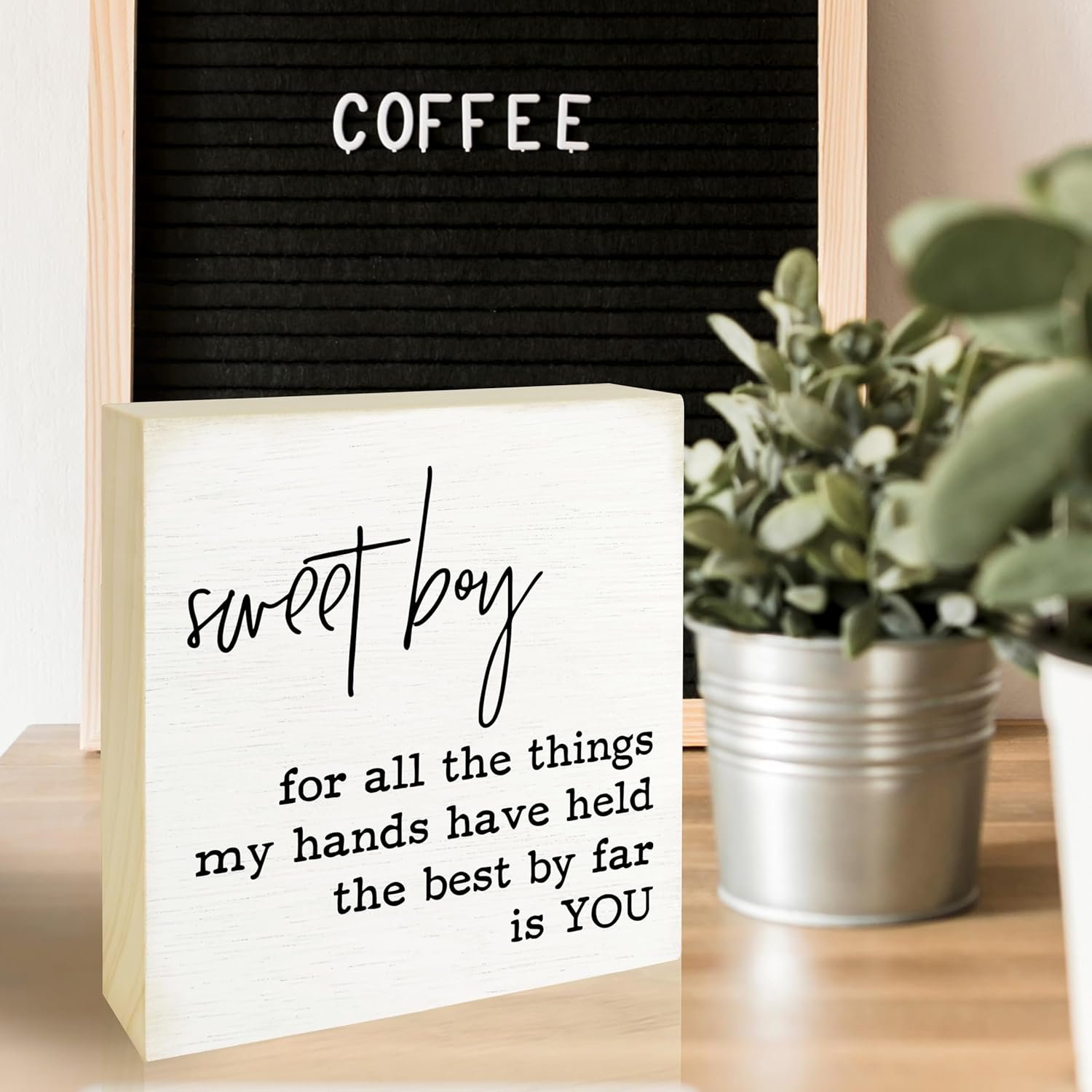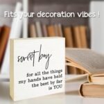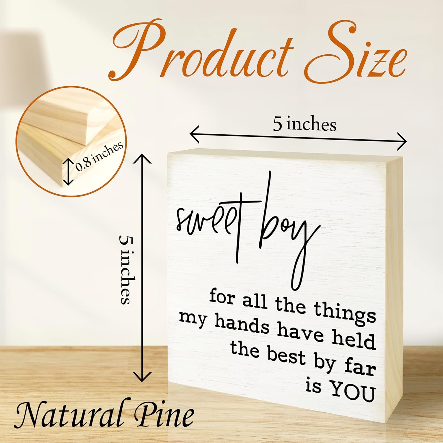 SIZE: the natural pine wood decor measures around 5 x 5 x 0.78 inches, proper size for home decoration.QUANTITY: you will receive 1 natural pine wood sign, convenient for you to placing any place you like.MATERIAL: This style of wooden signs are made of natural pine wood, which is sturdy & durable, and advanced printing tech on the surface design.APPLICATIONS: this natural pine wood is no doubt a nice gift idea when special days comes, and also you can pick one that fits your decoration vibes as your tabletop decor sign, nice decor & gifting choice!