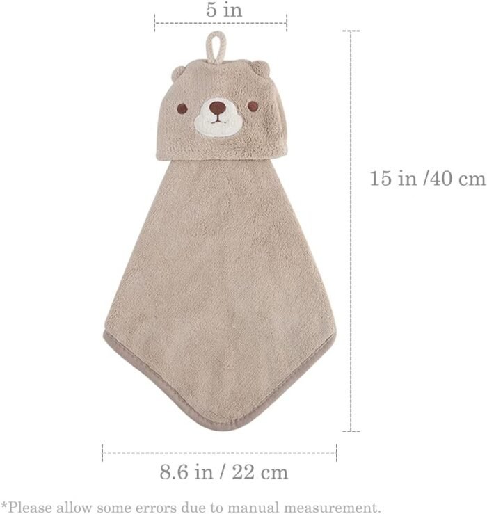 Hanging Design and Edged Well:Cartoon Animal hand towels has a hanging lanyard and a animal hat on the top, easy to hang and store. Delicate edged make it durable longlasting. Can be used as kitchen hand towels, bathroom hand towes, and cleaning cloths.