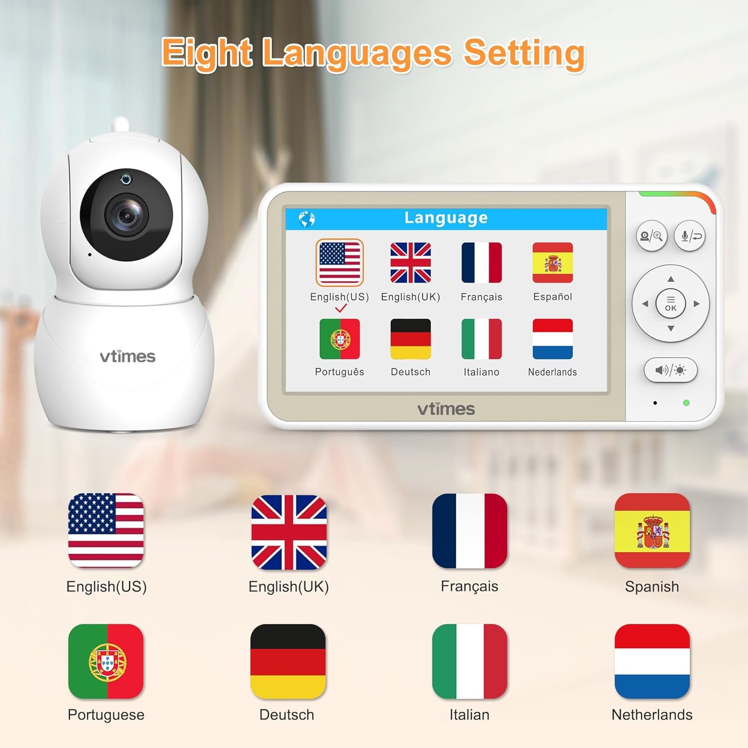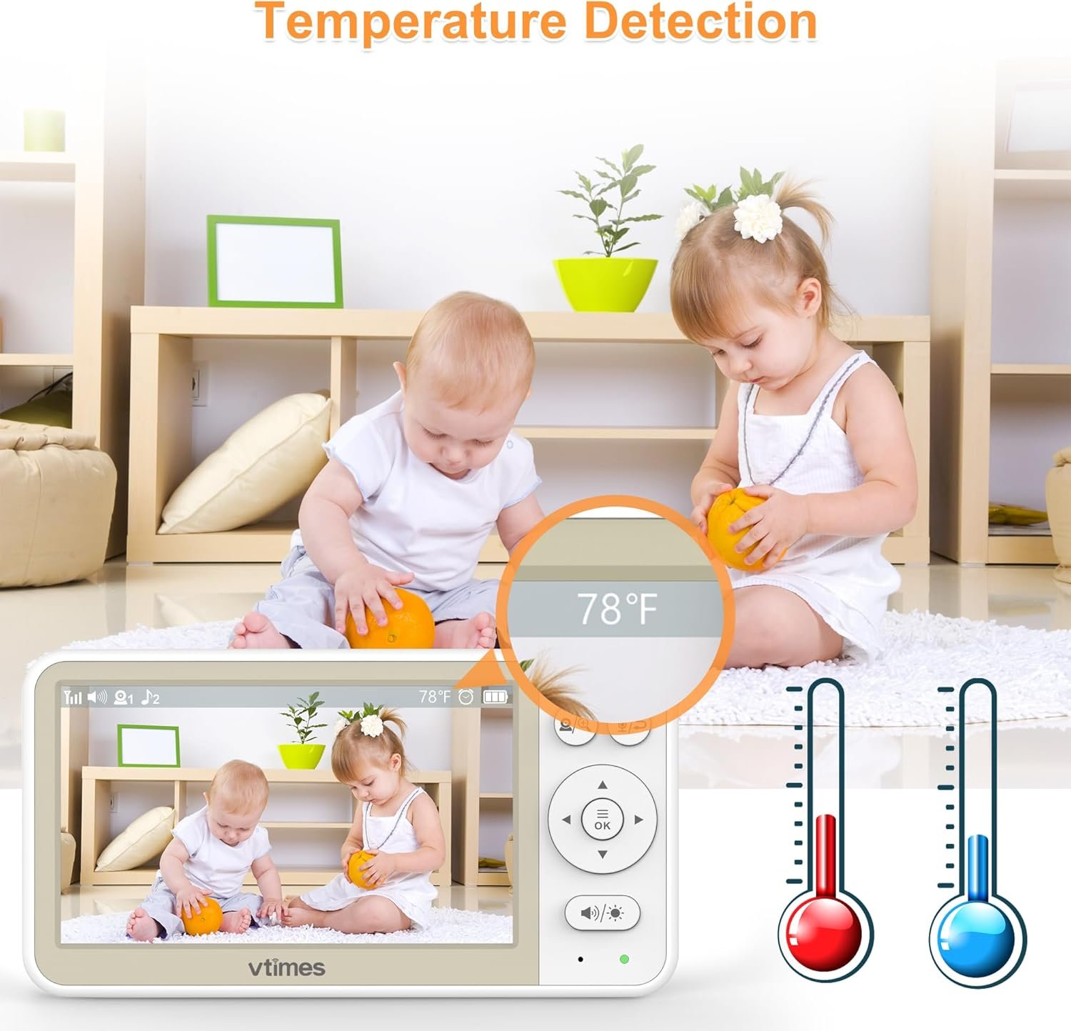 This baby monitor camera features a large 5″ screen,which allows you to see your child very clearly. The IPS screen also ensures a clear, smooth, and realistic image that greatly reduces eye irritation.