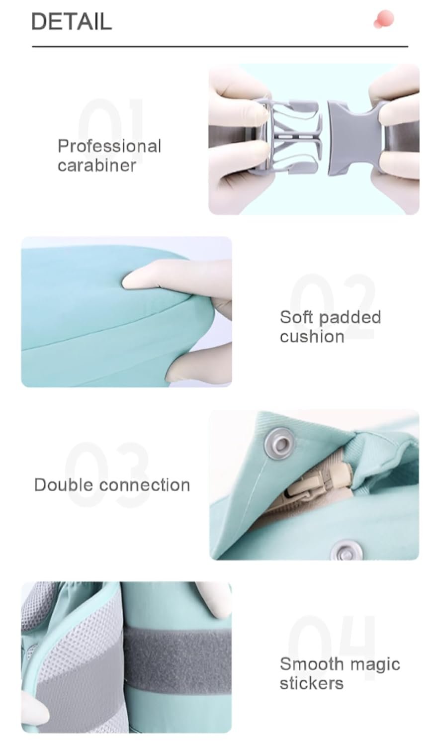 1.Comfy Cuddles: Wrap your little one in the coziest 100% cotton hug. Soft, breathable, and luxurious feel. Innovative mesh design for enhanced ventilation and comfort. 2.Super Safe Snuggles: Double-lock safety with an easy waist buckle and Velcro snap. Because your baby’s safety is our top job! 3.Seasonal Bliss and Ergonomic Brilliance: Revel in year-round comfort. Nurture your baby’s posture with spine support and ergonomic design.