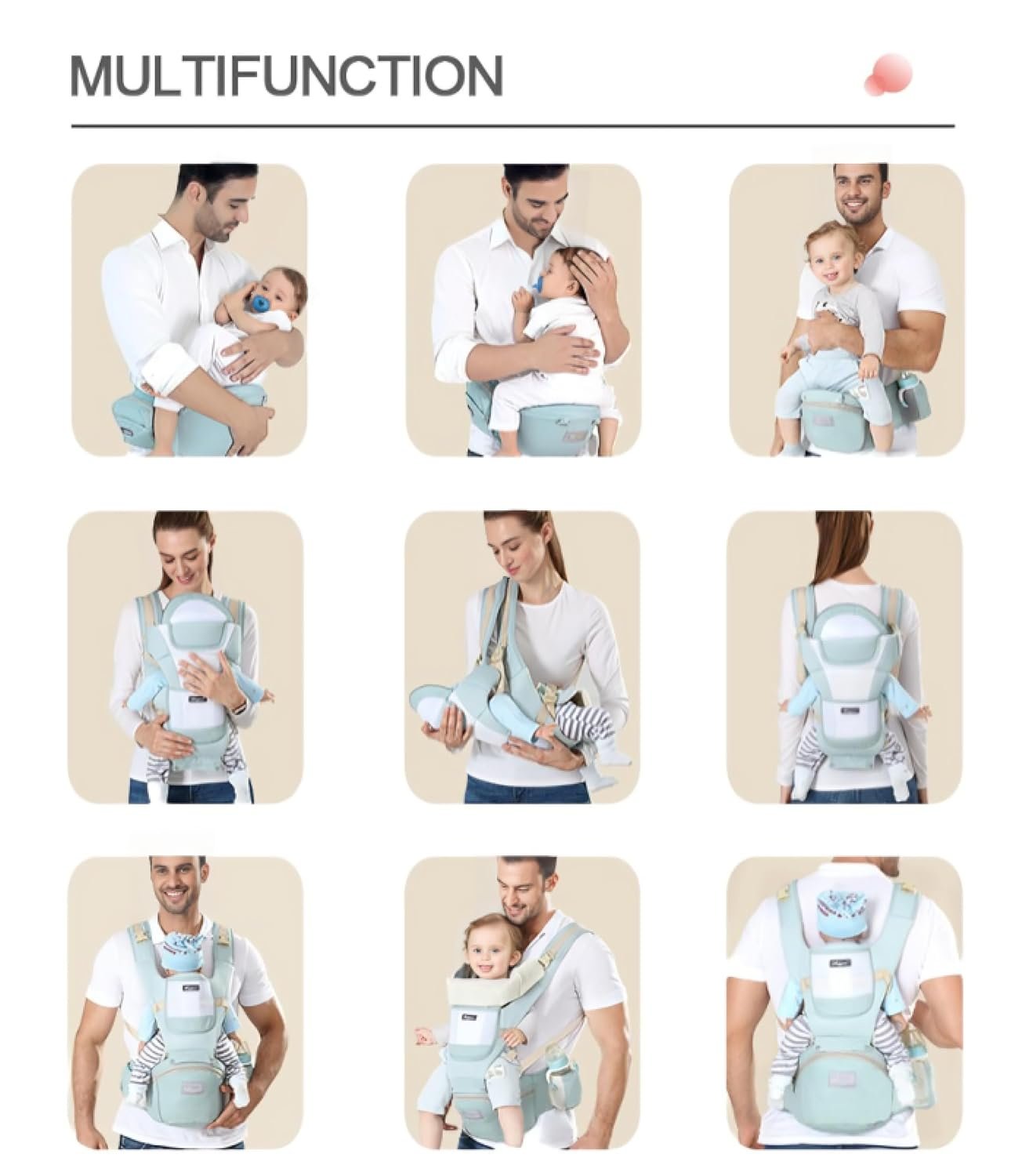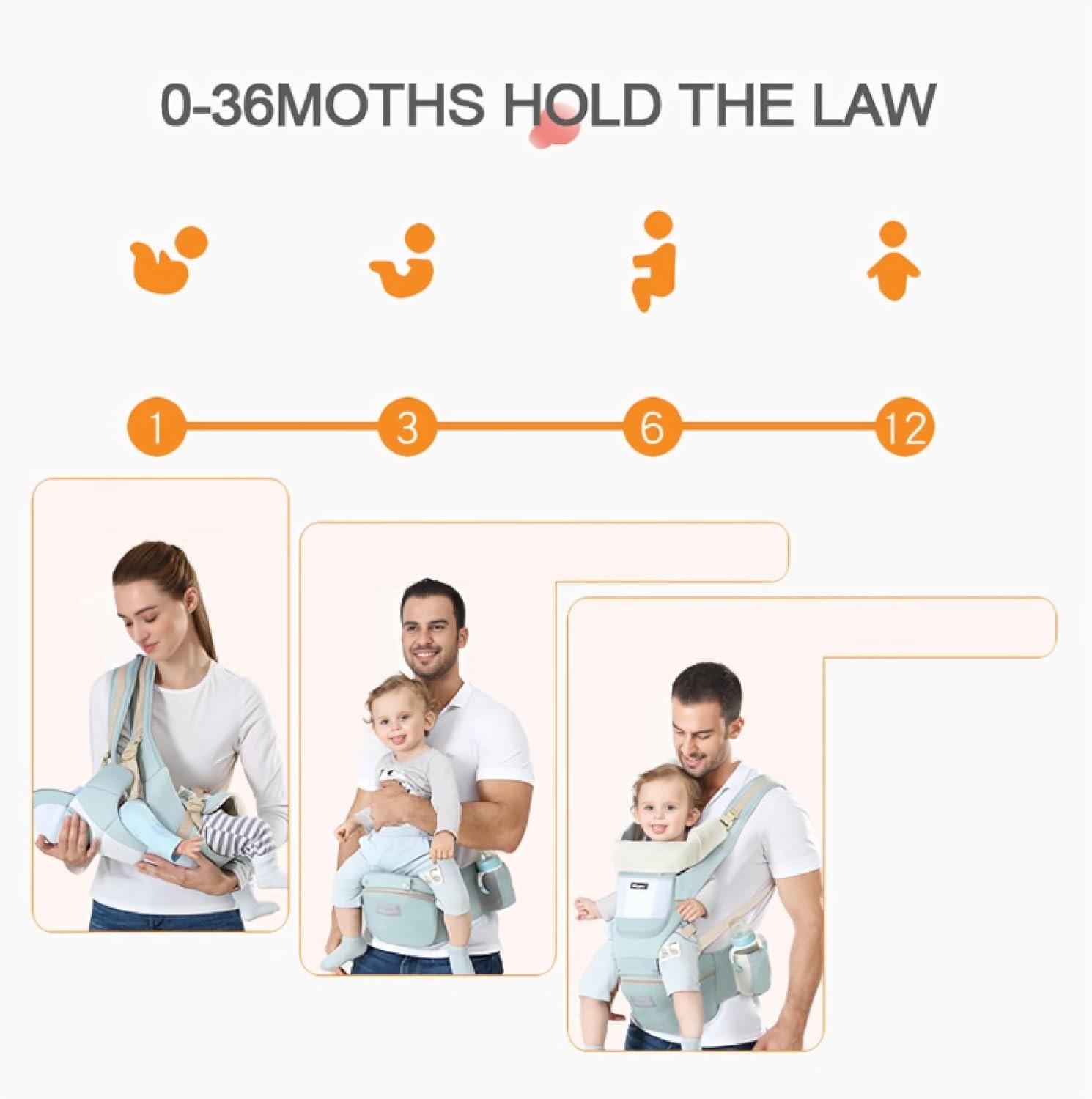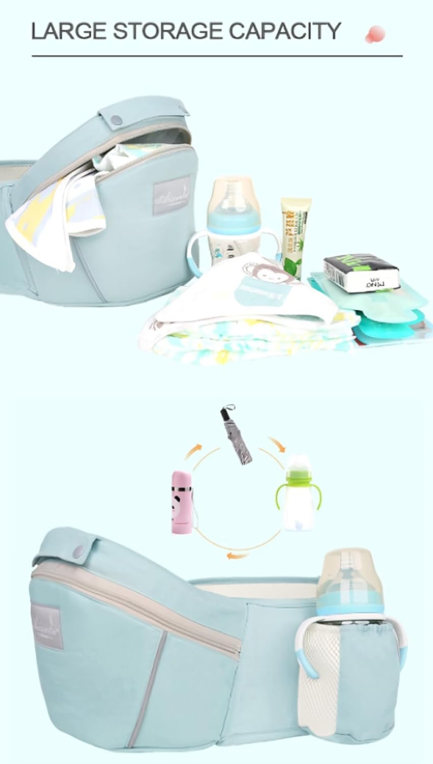 Enjoy a carrier that cares for both baby and parent, reducing spinal stress. 4.Light as a Feather, Handy as a Pocket: Easy-breezy with pockets for your stuff. Side pockets for baby’s bottle – because we’ve got you covered! 5.Enduring Quality and Multi-Functional: Suitable for ages 0-36 months, weighing 6lb-45lb. Multi-functional design allows various carrying positions. Hip seat can be removed, and baby’s exposed space controlled by adjusting the upper baffle.