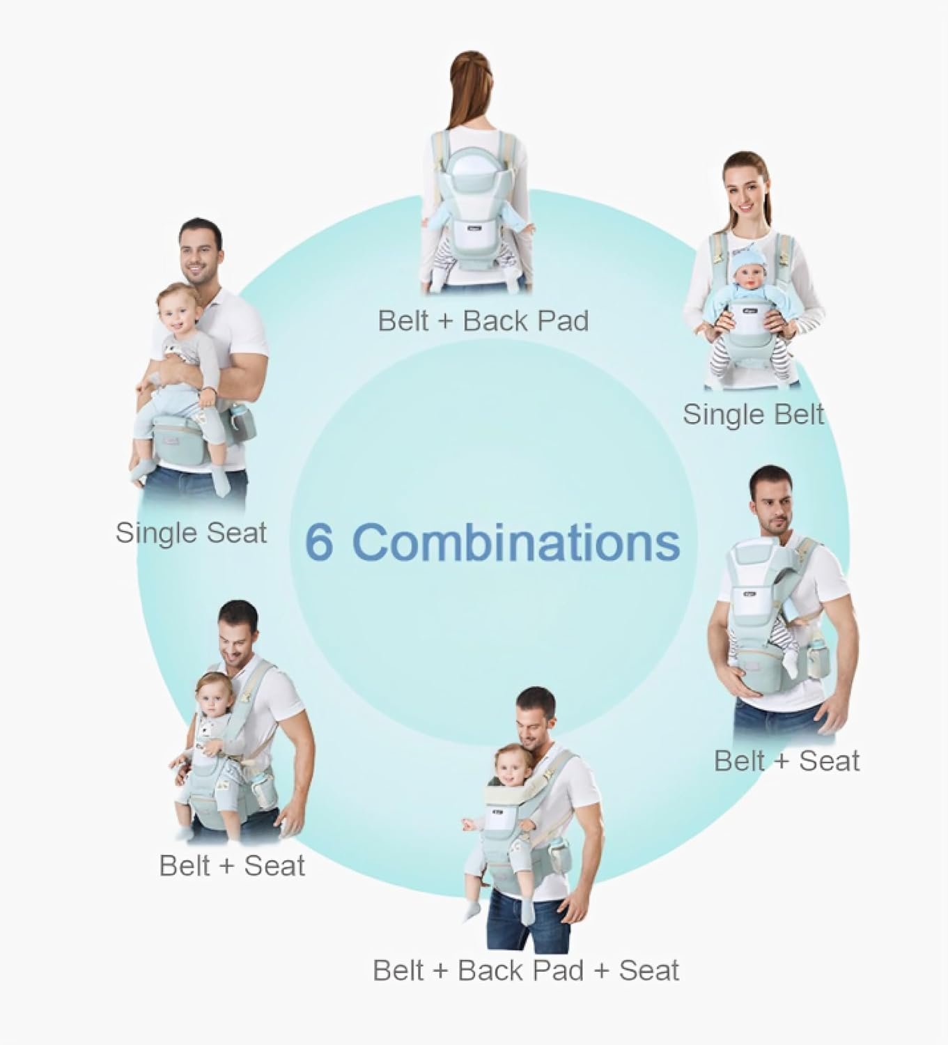 6.Six Ways to Wow: Showcase your style with up to six stunning combinations. Revel in the freedom to carry your baby in six different, delightful ways. 7.Hands-Free Harmony: Liberate your hands for the tasks that matter. Achieve parental bliss with a secure carrier, ensuring your baby stays snug while you conquer your day.