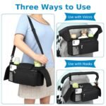 Multiple Usage Methods : It can be hung as a stroller cup holder organizer on the stroller. When you don’t need to use a stroller, you can also install the accompanying strap and carry this organizer bag for easy outing.