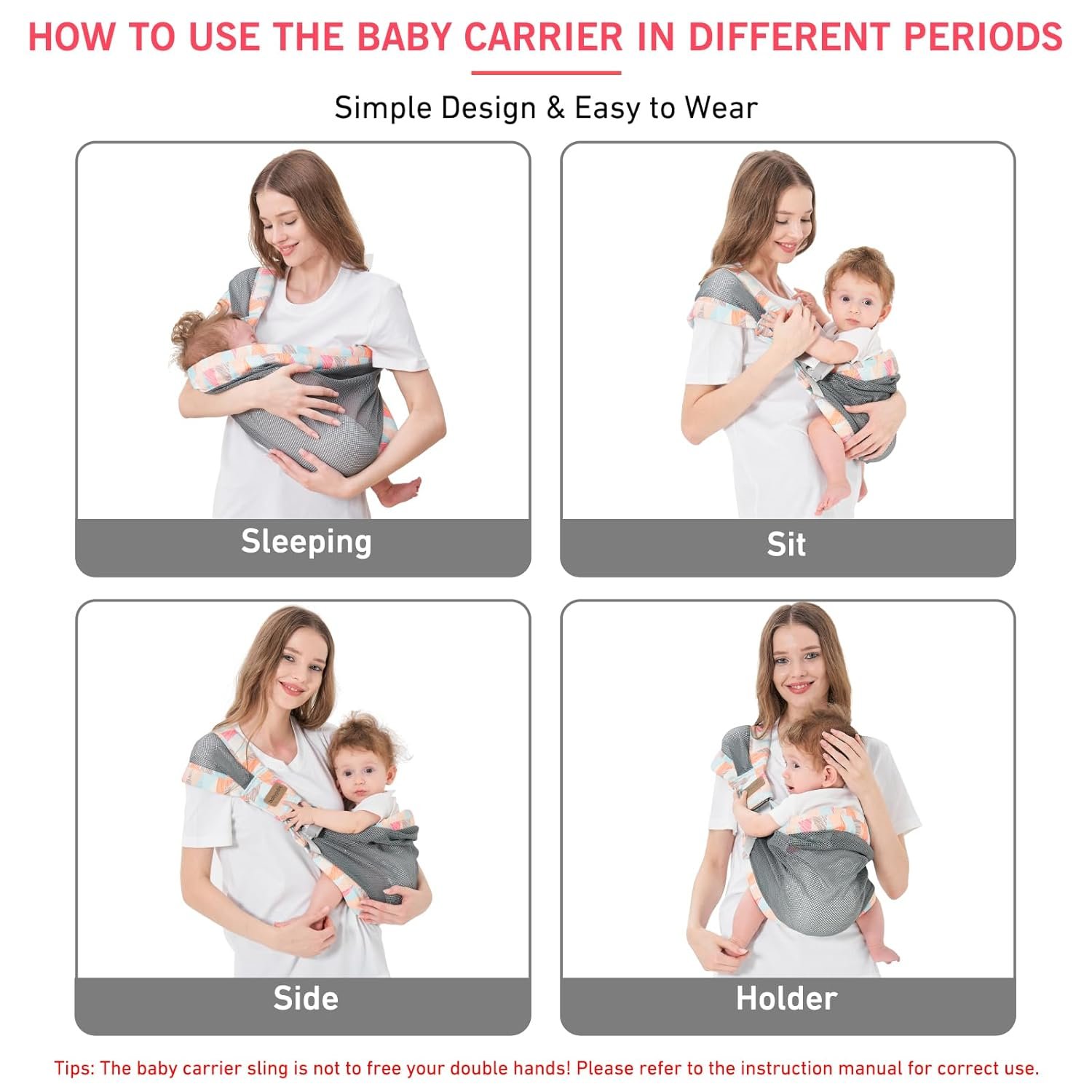 Breathable Mesh and Soft Materials and Four Seasons – Baby Carrier Newborn: The newborn essentials of baby wraps carrier adopts breathable mesh design and comfortable material, and the soft skin of babay wrap carrier is very friendly to the baby and parents. This mesh baby carrier sling is specially designed for all seasons, which is cool in summer and light in winter. The material of baby sling carrier is durable and can accompany you for many seasons