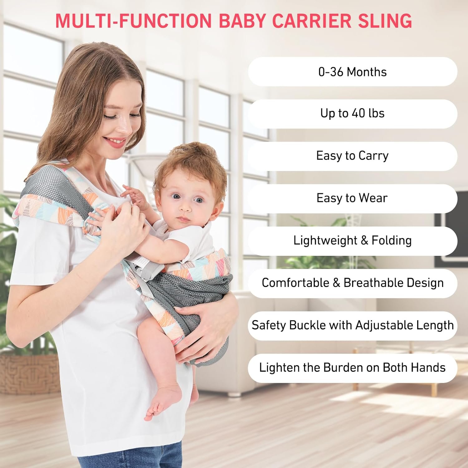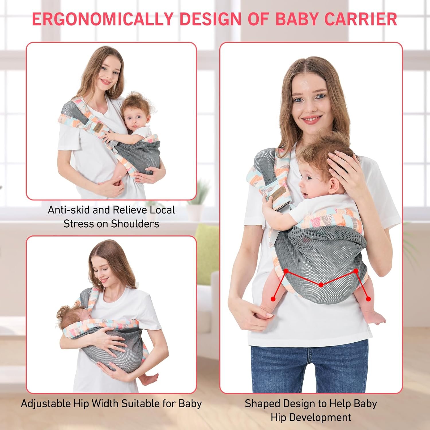Easy to Use and Easy to Carry – Baby Sling Carrier: The wrap baby carrier is designed with safe buckle, which is easy to use and can be operated independently. You need to put on the baby carrier, adjust your suitable length first, then put the baby in baby carrier wrap, and adjust the baby’s position to ensure safety. The toddler baby carrier is foldable, and the baby sling is about the size of a diaper after folding, so the baby carrier newborn to toddler is convenient to carry out