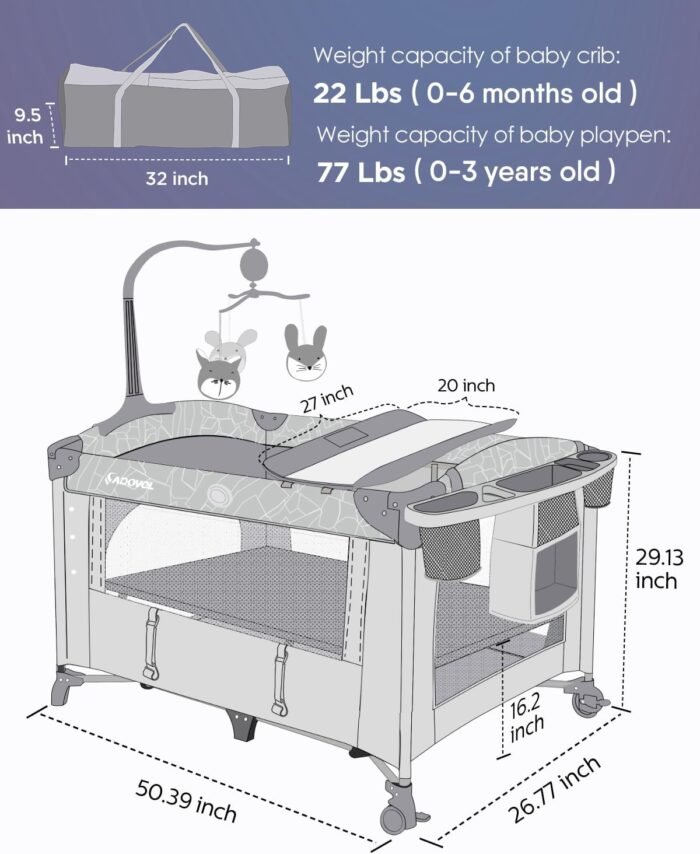 🐧 Peaceful co sleeping Time – A full size ADOVEL Pack ‘n Play can turn into the bedside sleeper with the side zipper down for C-sectionas mothers take care of your babe even in the midnight instead of moving drastically. 3 adjustable height designed which meets safety standards