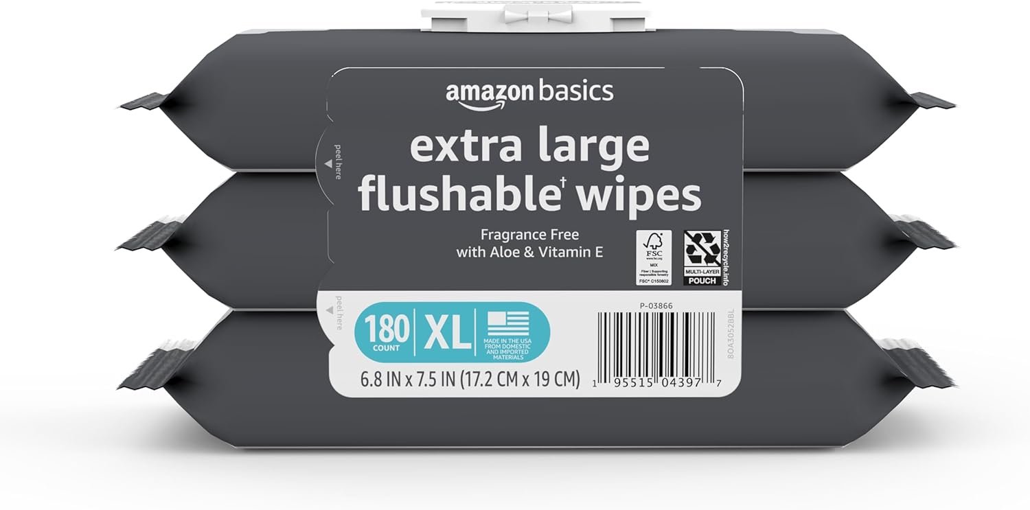 CONFIDENT CLEAN EACH TIME: Amazon Basics Extra Large Flushable Wipes are perfect for you!