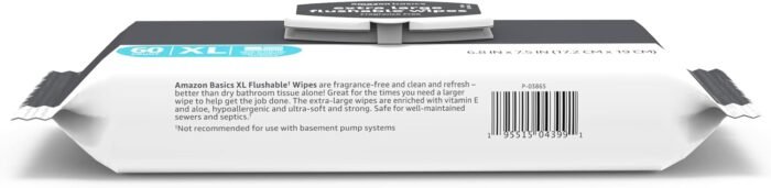 EXTRA-LARGE FLUSHABLE WIPES FOR AN EXTRA LARGE CLEAN: Amazon Basics XL wipes are more than 40% larger than the Amazon Basics Flushable Wipes.