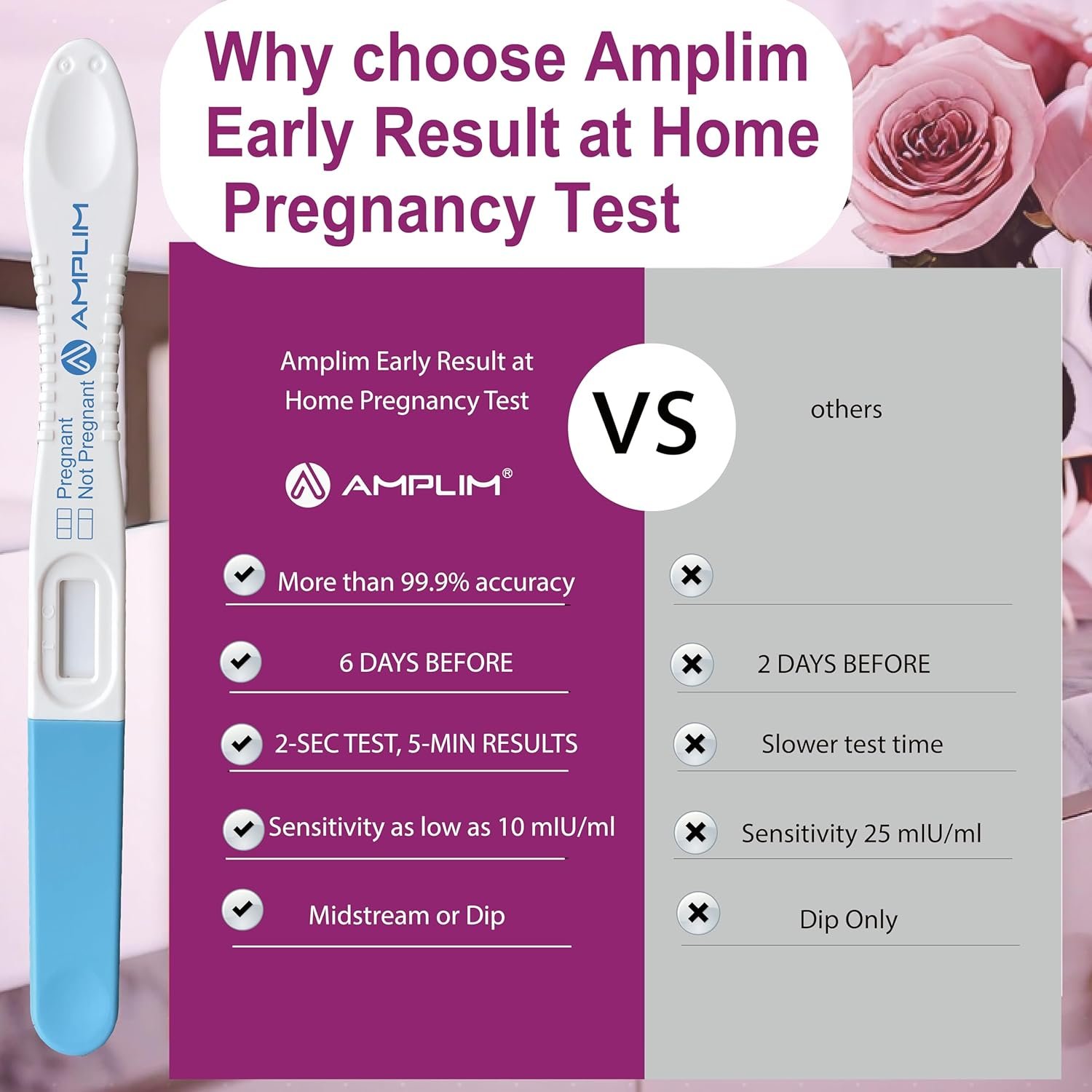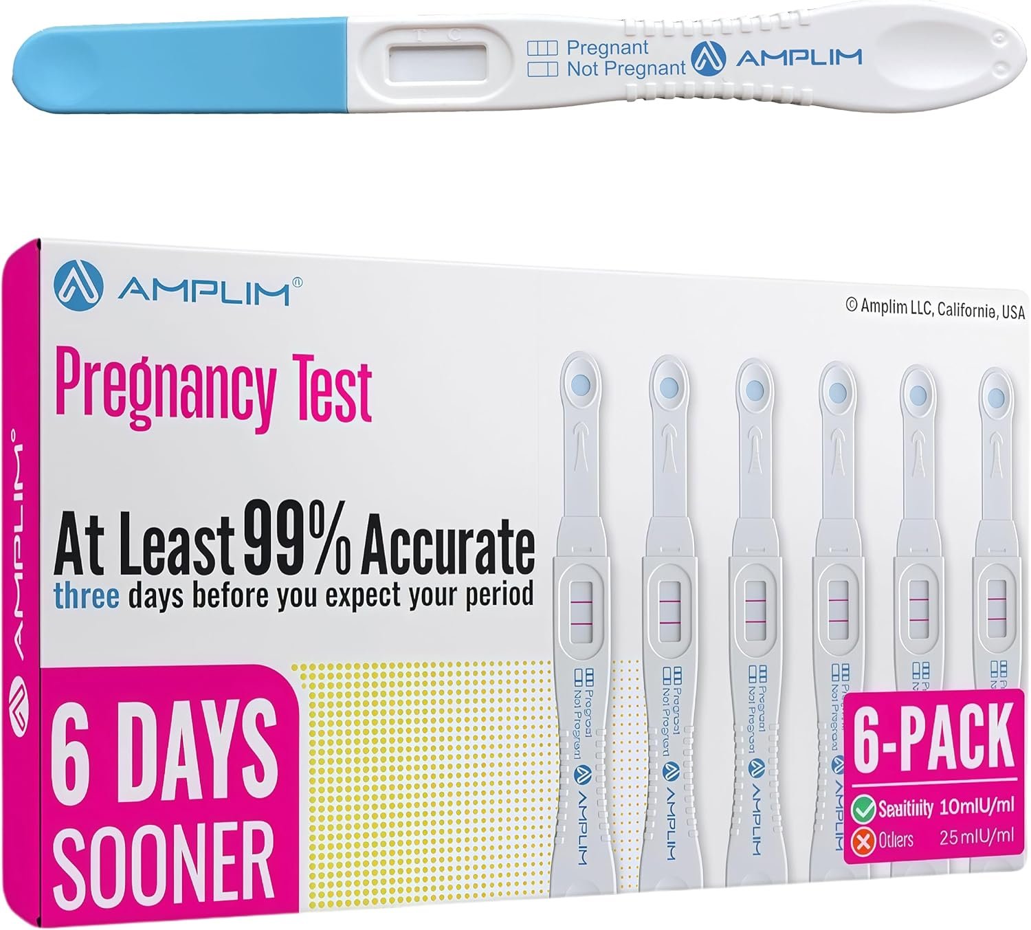 Discover if you’re pregnant sooner! Amplim early result pregnancy tests offer 99.9% accuracy, providing reliable results up to 6 days before your expected period. Convenient home medical urine test kit for discreet use. Consider our pregnancy kit