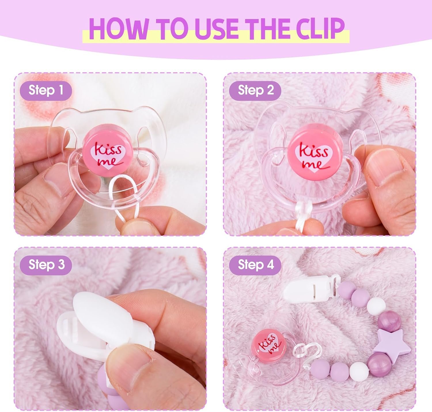 Aori Doll Accessories-Aori reborn baby doll magnetic pacifier and pacifier clip set.Full set brings more fun with reborn baby dolls.