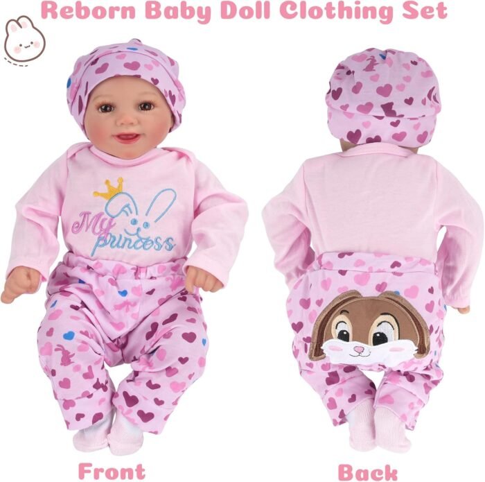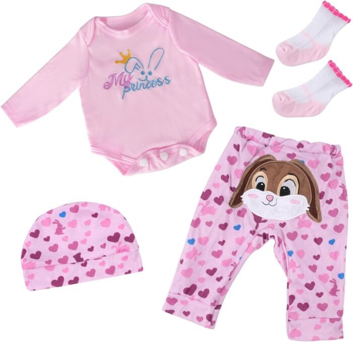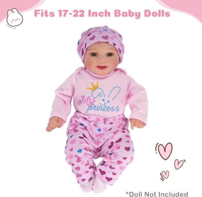 BABY DOLL CLOTHES SIZE: Cute Bunny and heart pattern design reborn baby doll clothes accessories suitable for 17-22 inch baby dolls and reborn baby dolls, these reborn doll clothes and doll accessories can be hand washed or machine washed and reused.
