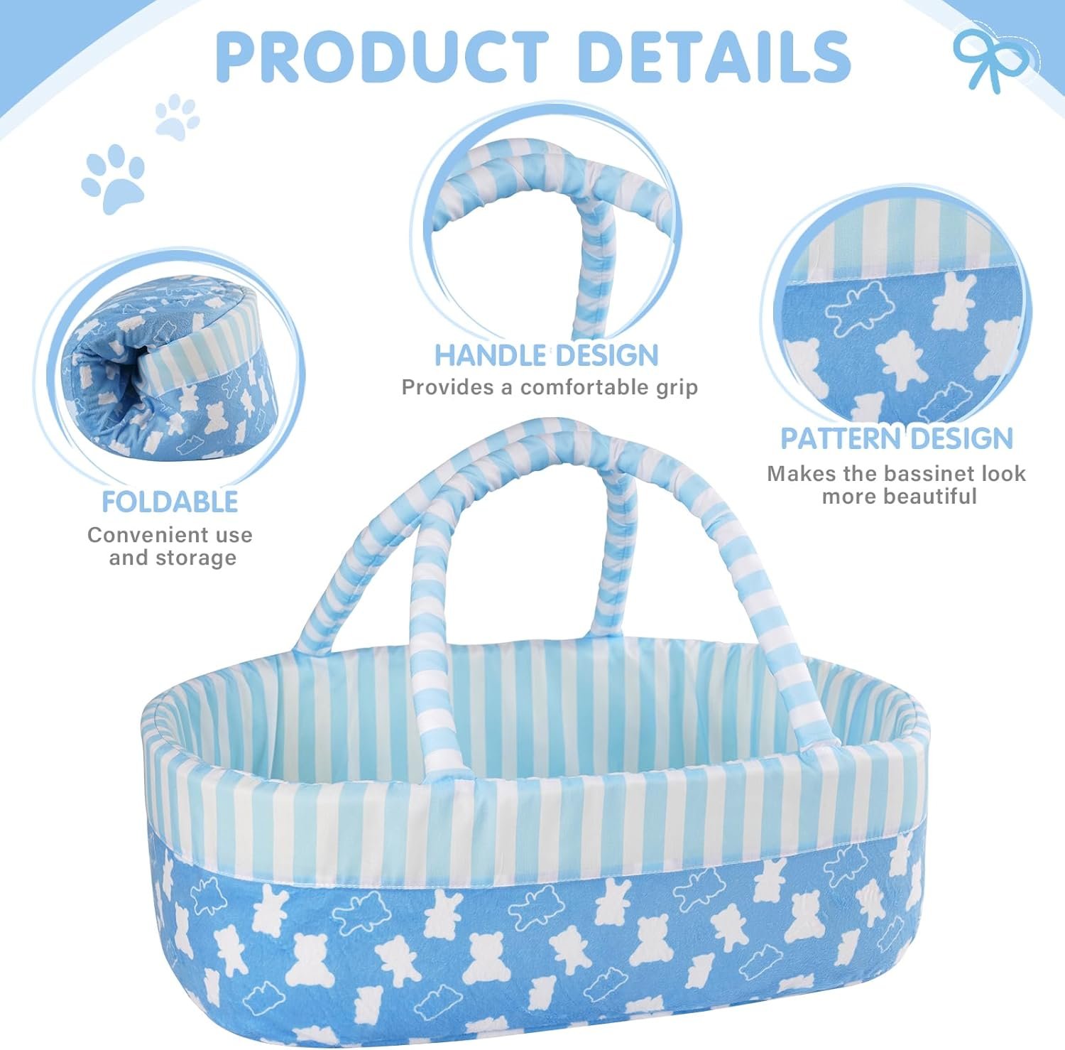 FOLDABLE BABY DOLL BASSINET: The reborn baby doll bassinet with animal print and stripes is ironable, durable, has a large space and easy to carry, it can hold reborn baby doll and reborn baby doll accessories, convenient for children to store their favorite baby dolls and dolls accessories