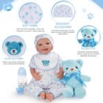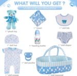 PACKAGE INCLUDED: This reborn baby dolls clothes set comes with 1*baby doll bassinet, 1*baby doll onesie, 1*baby hat, 1*doll bib, 1*doll diaper, 1*feeding bottle, 1*doll pacifier, 1*towel and 1*bear stuffed animal of total 9 pcs baby doll clothing accessories to enrich your children’s gaming experience