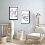 【Vintage-Inspired Nursery Wall Art】With its muted tones and nostalgic travel motifs, this vintage nursery decor adds timeless charm to a growing boy’s space. Whether you’re creating a vintage boy nursery decor or mixing styles, this set brings classic warmth to your nursery art setup.