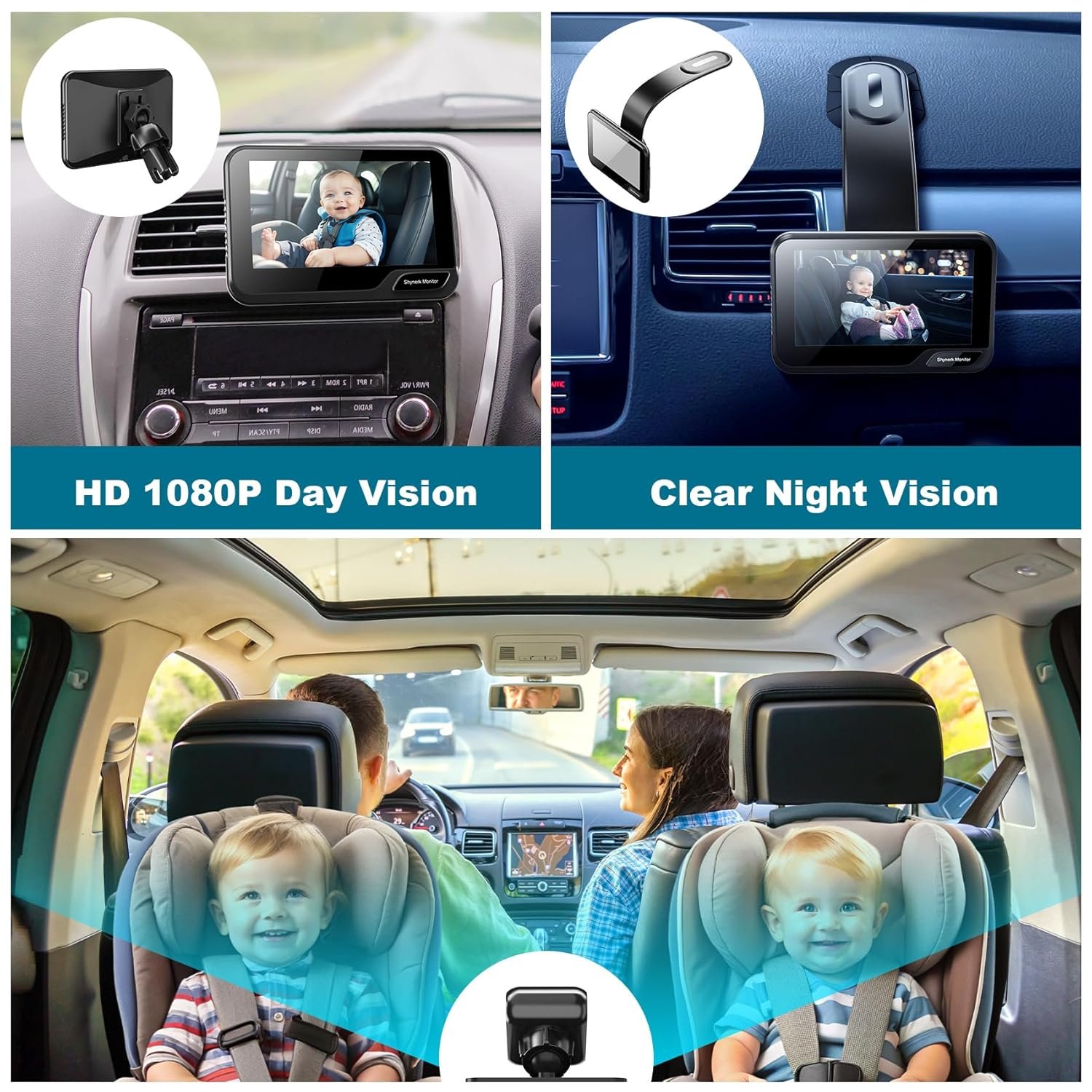 【4.3 inch Display & HD 1080P Color Night Vision】The 4.3 inch display provides clear visuals and ensures fast and accurate information transmission. Utilizing the latest upgraded chip technology, the baby car camera delivers real-time, clear, and bright images, both during the day and at night, with no delay. Additionally, the baby car seat camera enhances vehicle safety, allowing parents to drive with peace of mind during their travels without the need to turn around.