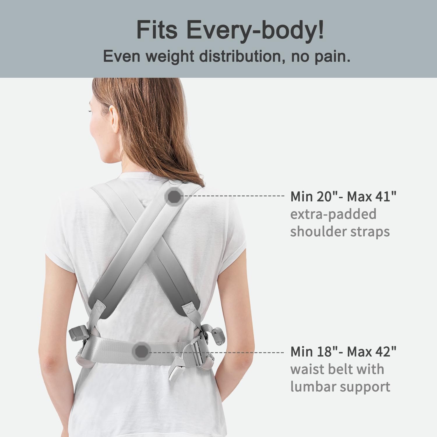 COMFORTABLE: Our baby wrap straps have a wider supportive waistband and expandable cross straps, ensuring even weight distribution and providing better comfort for parents and babies. Waist range: 18-42 cm,shoulder straps range:20-41 cm
