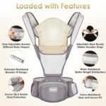 MORE STORAGE SPACE: The hip carrier for baby features two sides of the waist and under the waist bench are also set up with a enough storage space to store bottles, diapers, keys and other essentials. The thoughtful design to help parents more comfort and conveniently in playing, walking, shopping and traveling