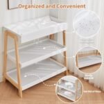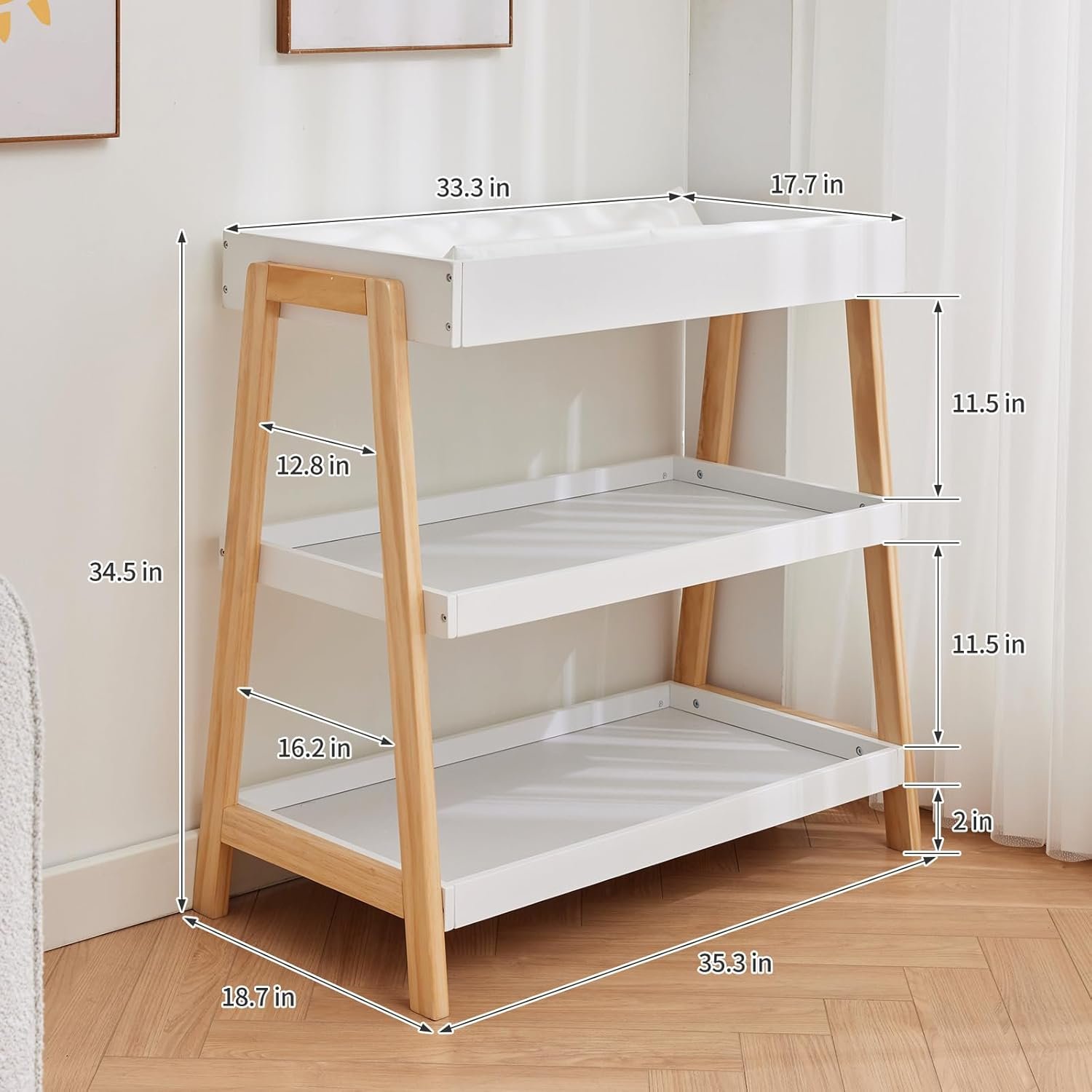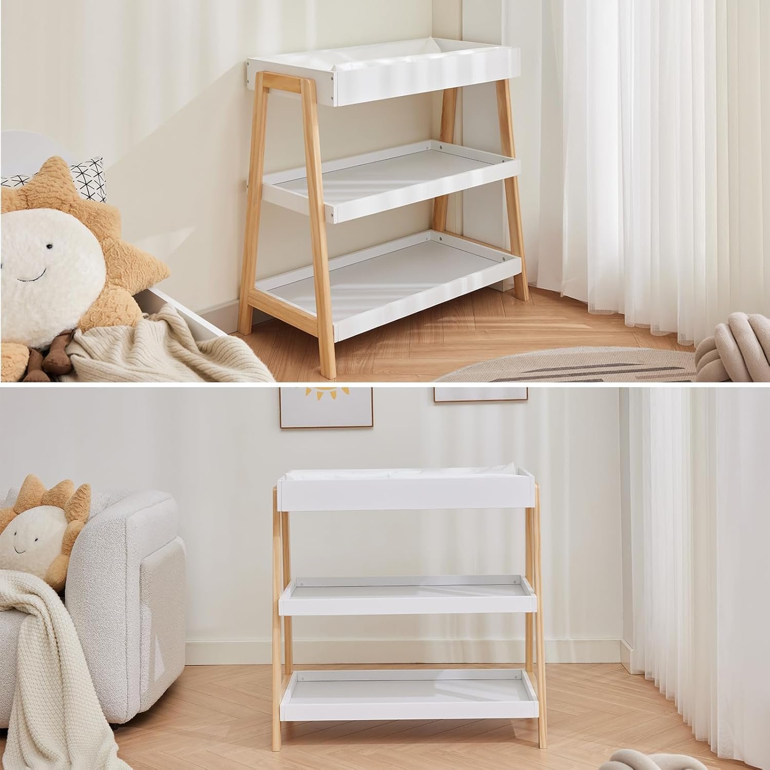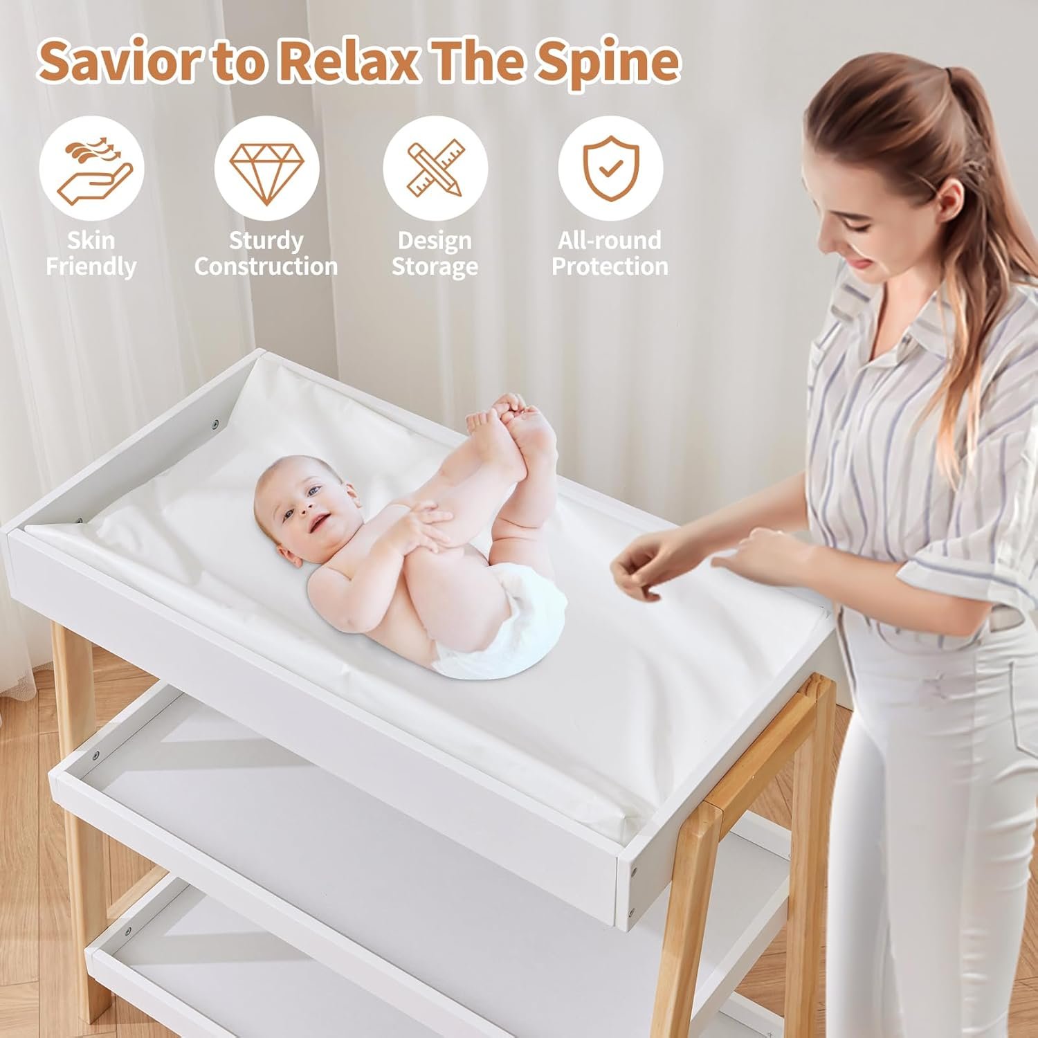 Sturdy and Safe Construction: Made of premium pine and plywood for durability and stability, the baby changing table features skin-friendly materials for safety and all-round corner protection to prevent accidental bumps or injuries during diaper changes