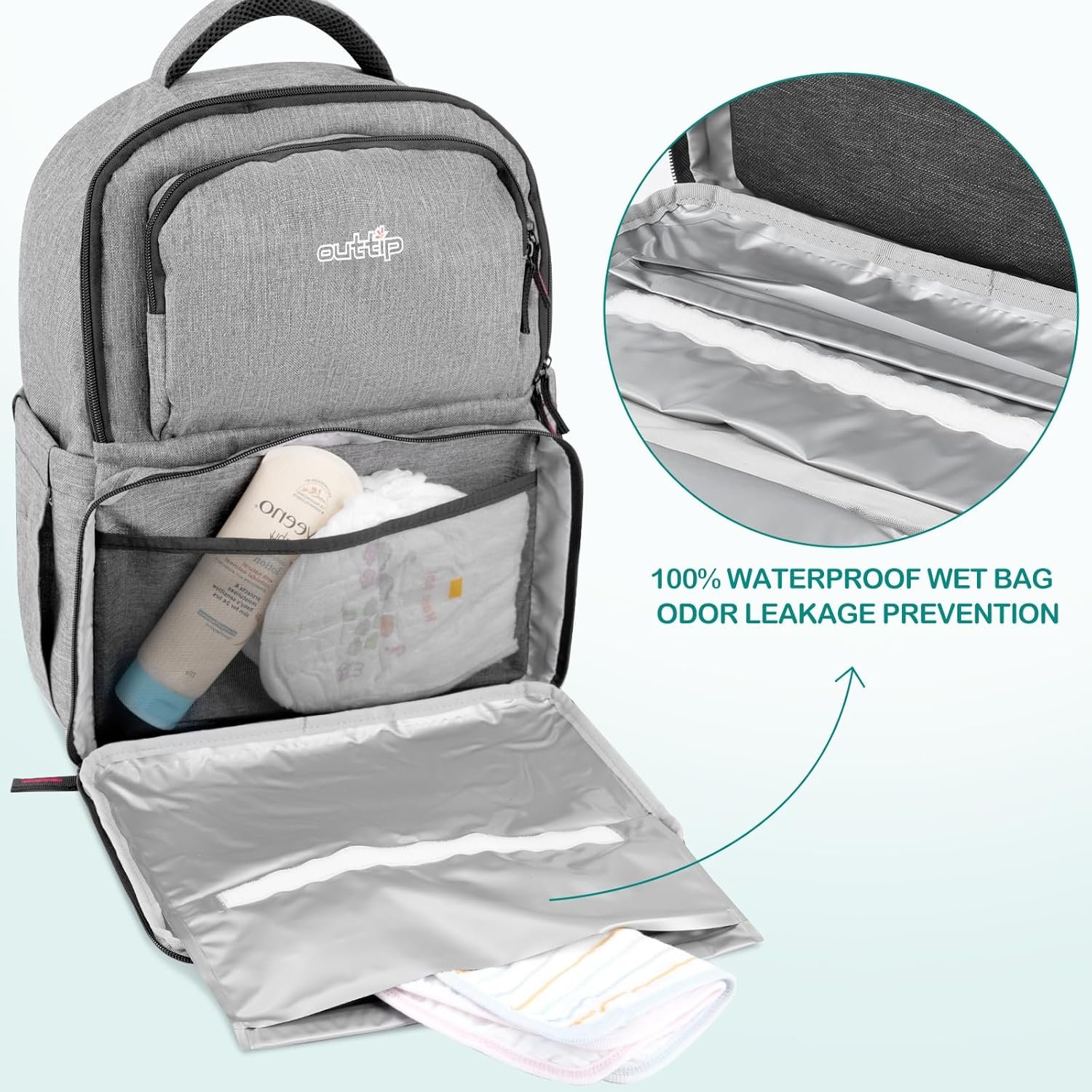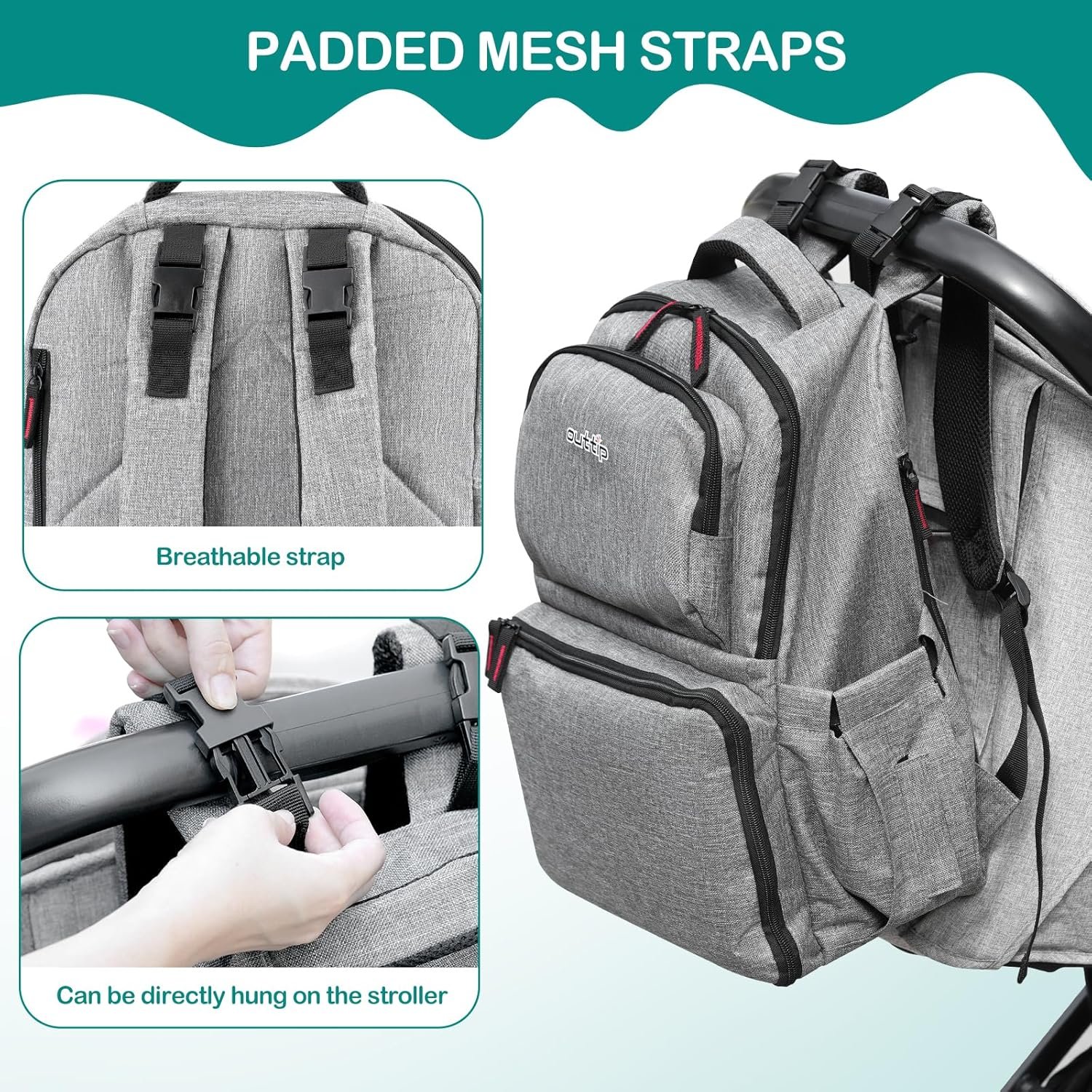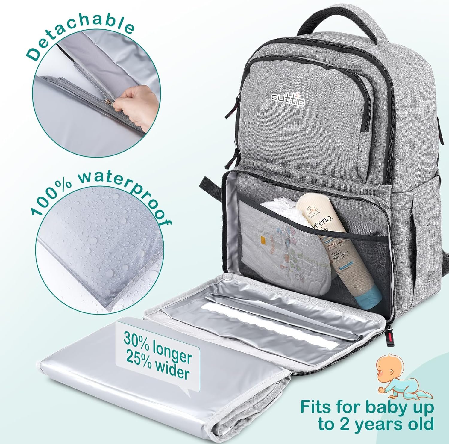 2-in-1 Diaper Backpack with Diaper Changing Pad: Comes with a detachable 100% waterproof changing pad! Change your baby’s diaper anytime, anywhere without any worries.The changing pad can be detached for more rooms after your little one is out of diapers!