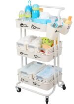 【STURDAY & DURABLE】- Our 3-Tier heavy duty baby essentials organizer cart choose high quality ABS hard plastic storage bins with carbon steel legs/handle, great load-bearing, anti-rust and anti-corosion.