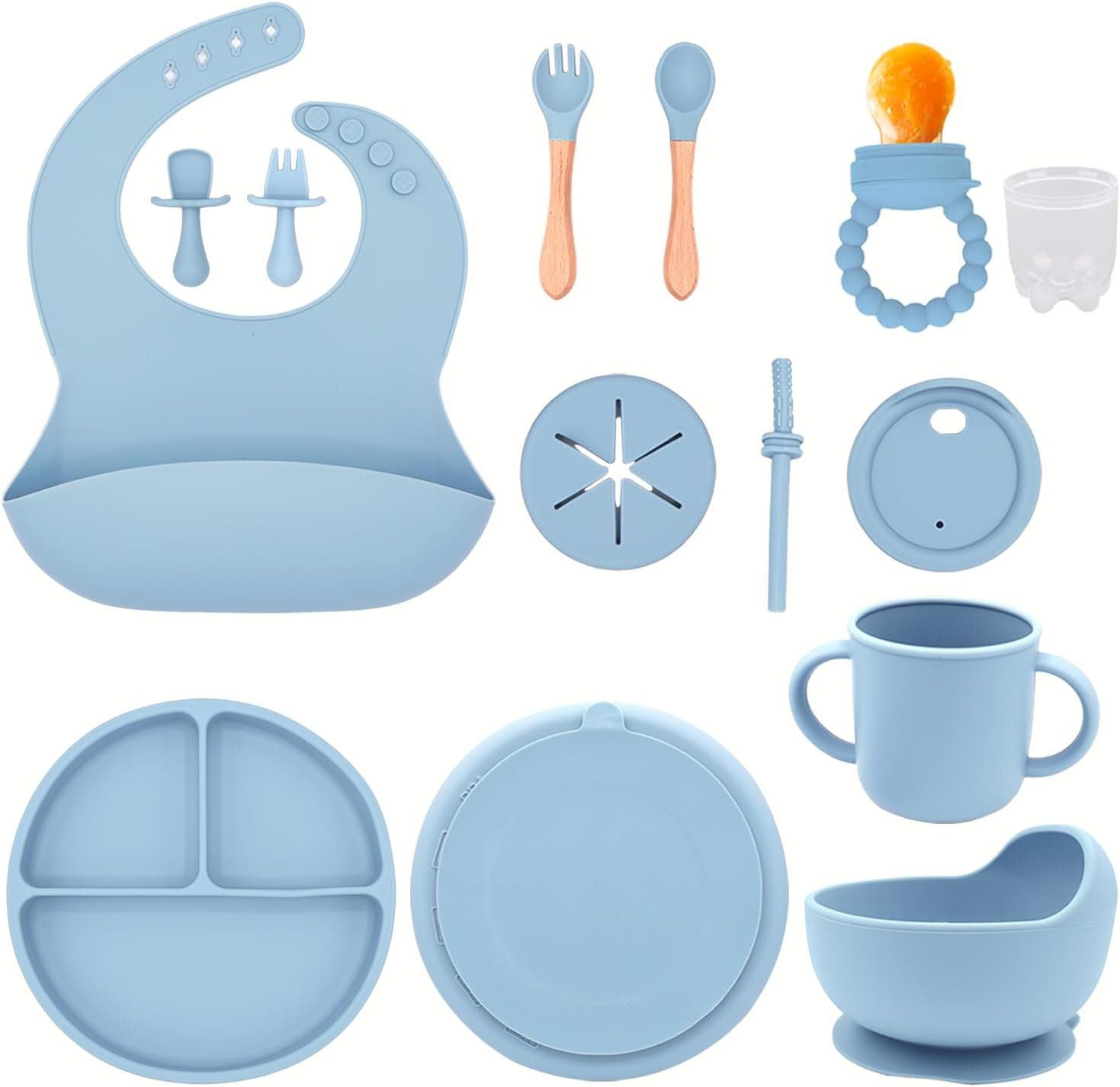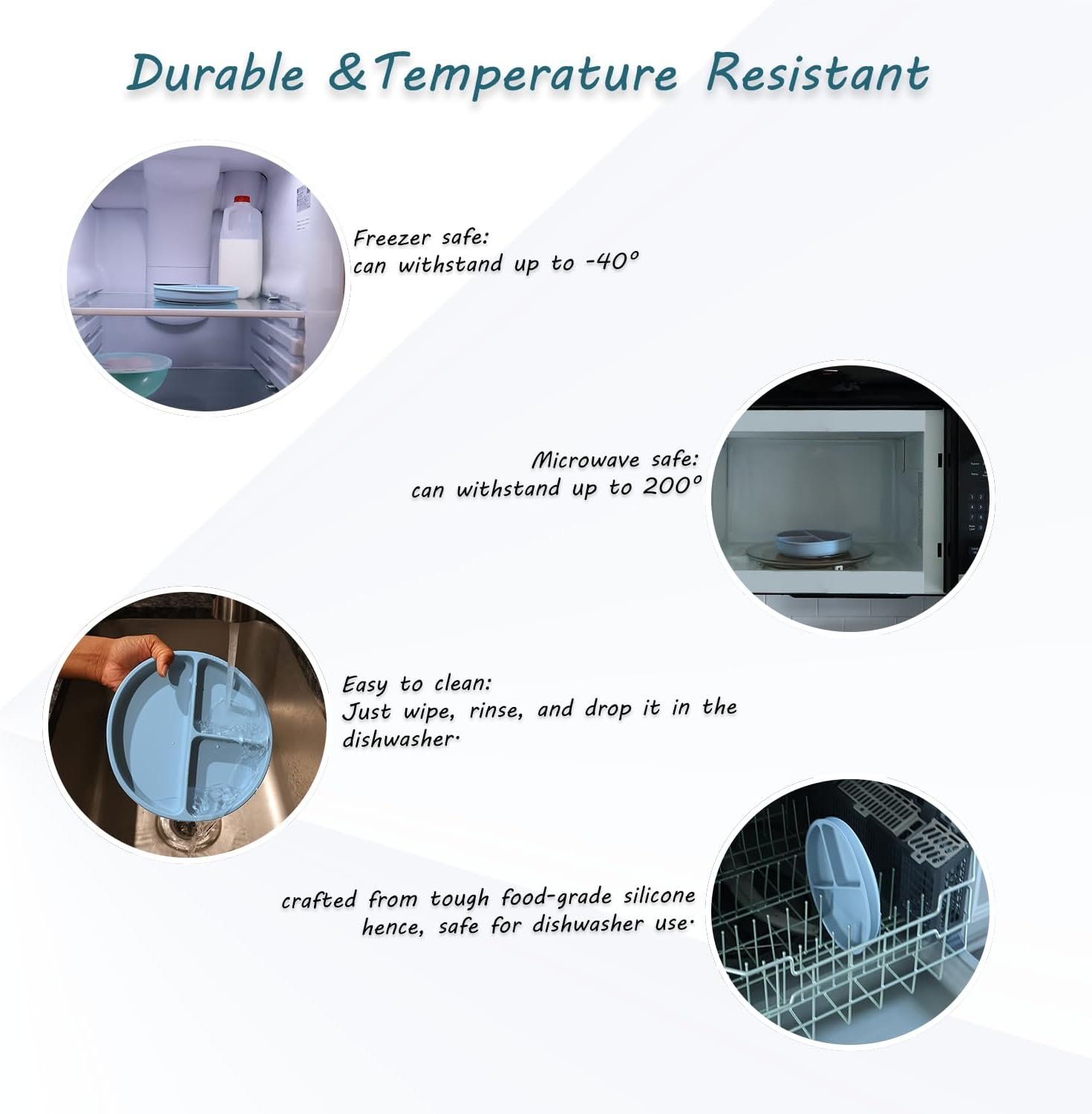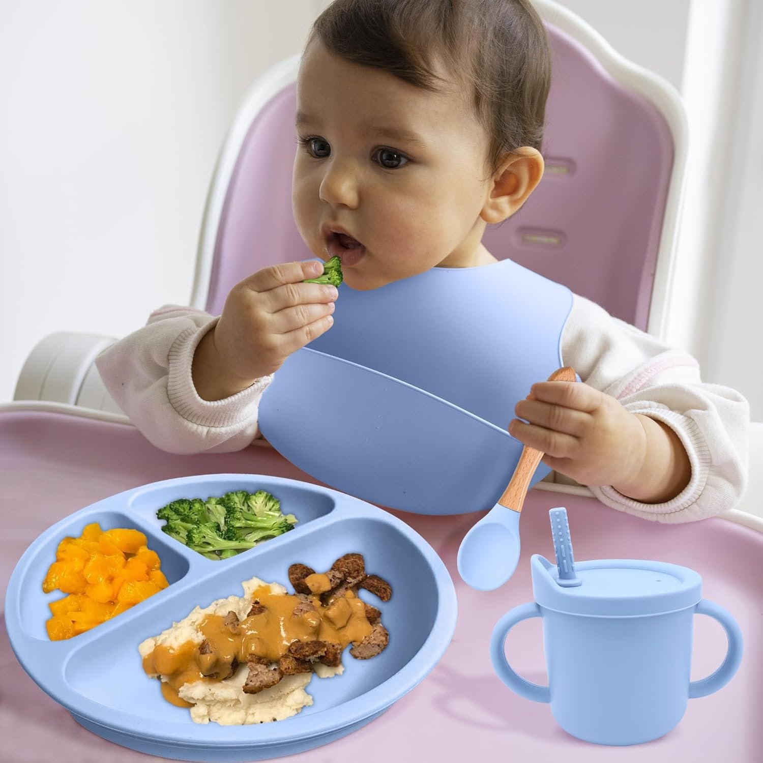 EASY TO CLEAN & DISHWASHER FRIENDLY: Our fantastic baby feeding set is crafted from tough food-grade silicone that you can breeze through cleaning – just use some soap and water or pop it in the dishwasher. Whether you need to warm up meals in the microwave or stash them in the fridge or freezer, this set has got your back!