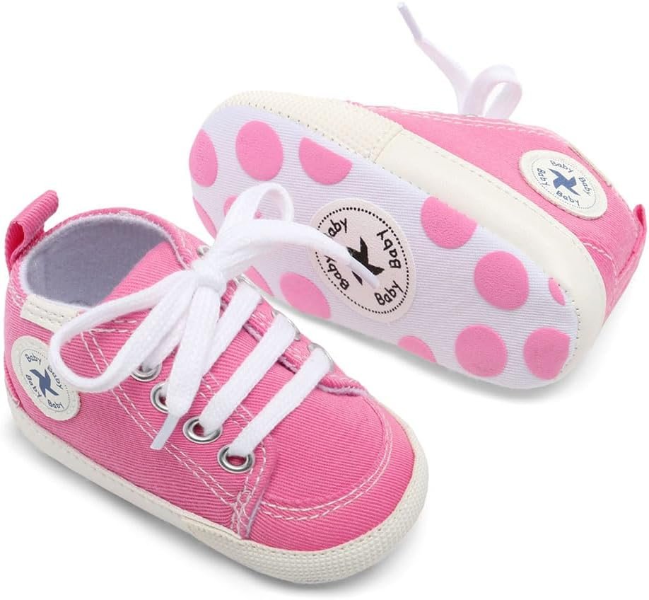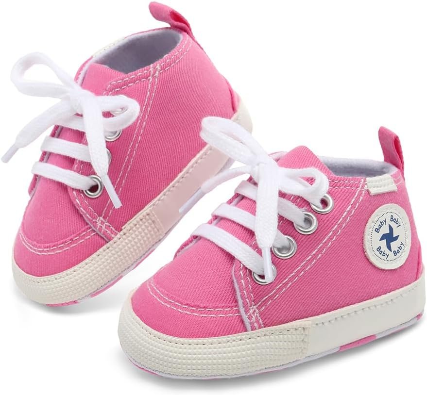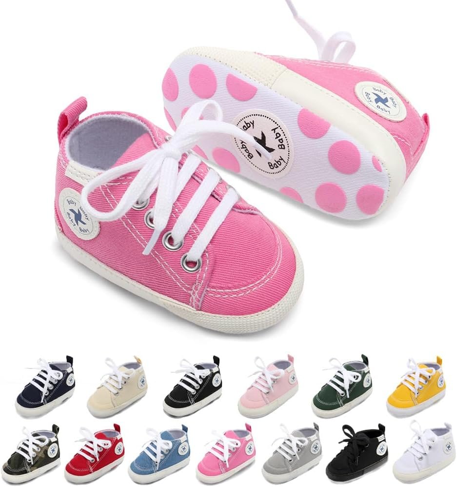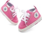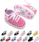 Customers find these baby shoes cute, with one mentioning they look like Converse, and appreciate them as great starters for 1-year-olds. The shoes receive positive feedback for their comfort, softness, and color variety, and customers consider them good value for money. The fit and quality receive mixed reviews – while some find them true to size and well-made, others say they’re not true to size and have paper-thin material. The slip resistance is also mixed, with some finding them non-slip while others say they don’t provide much grip.