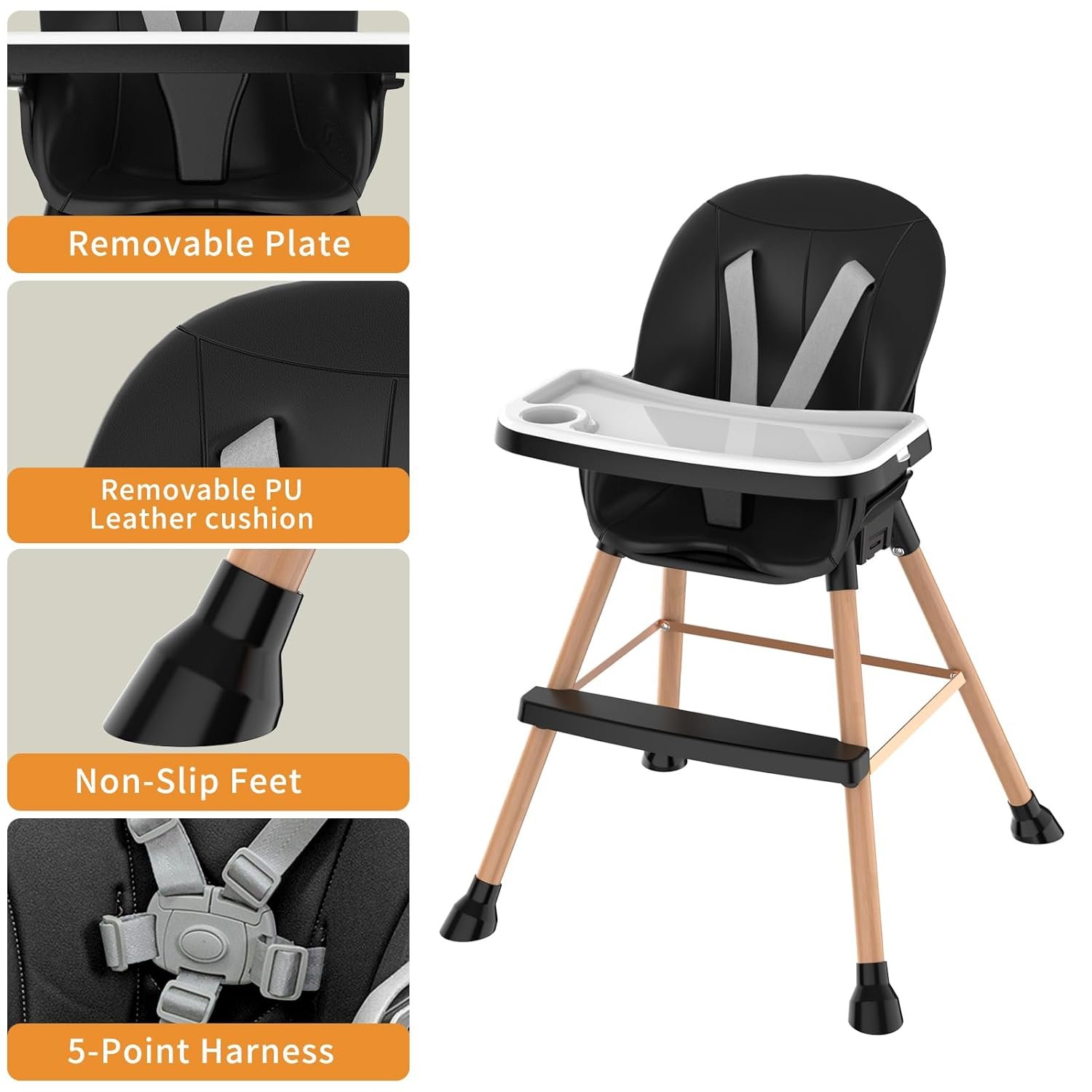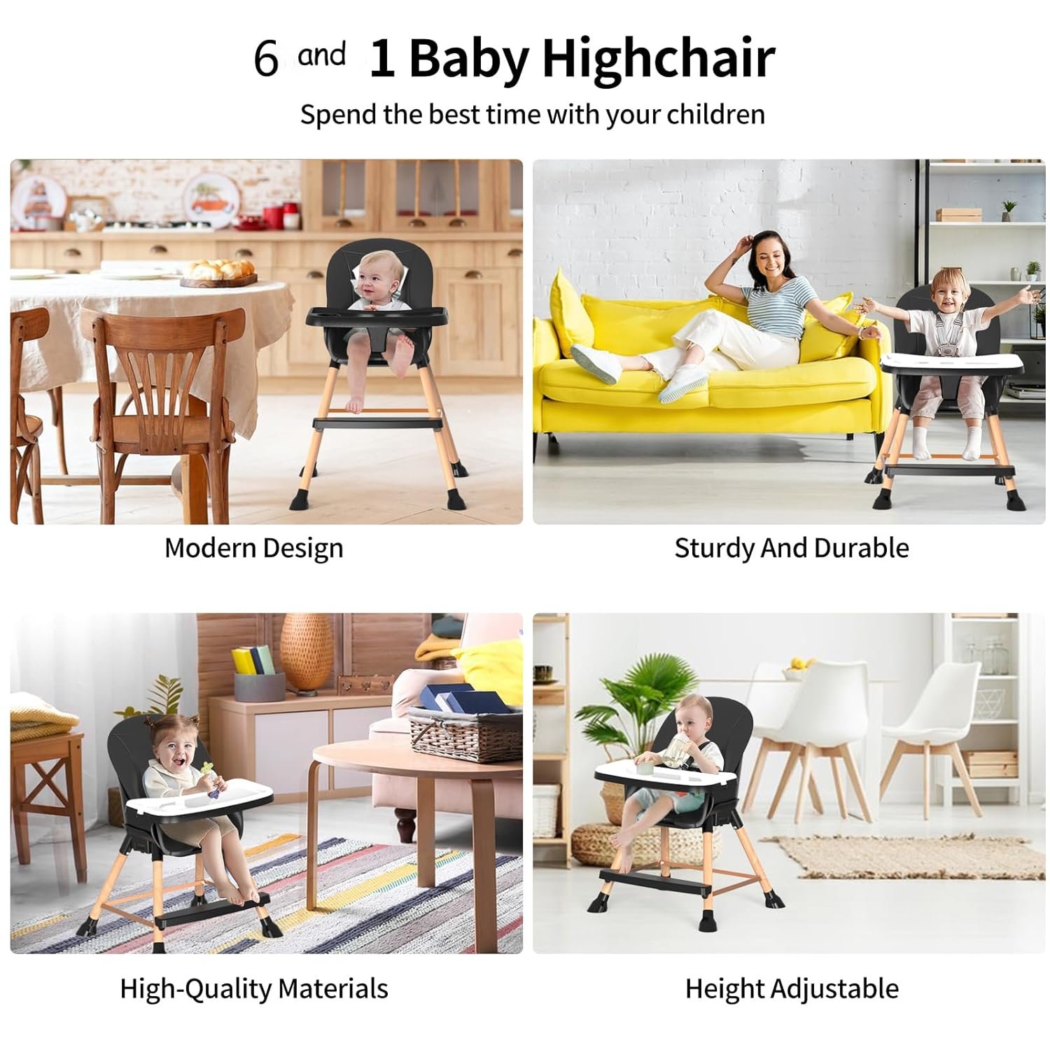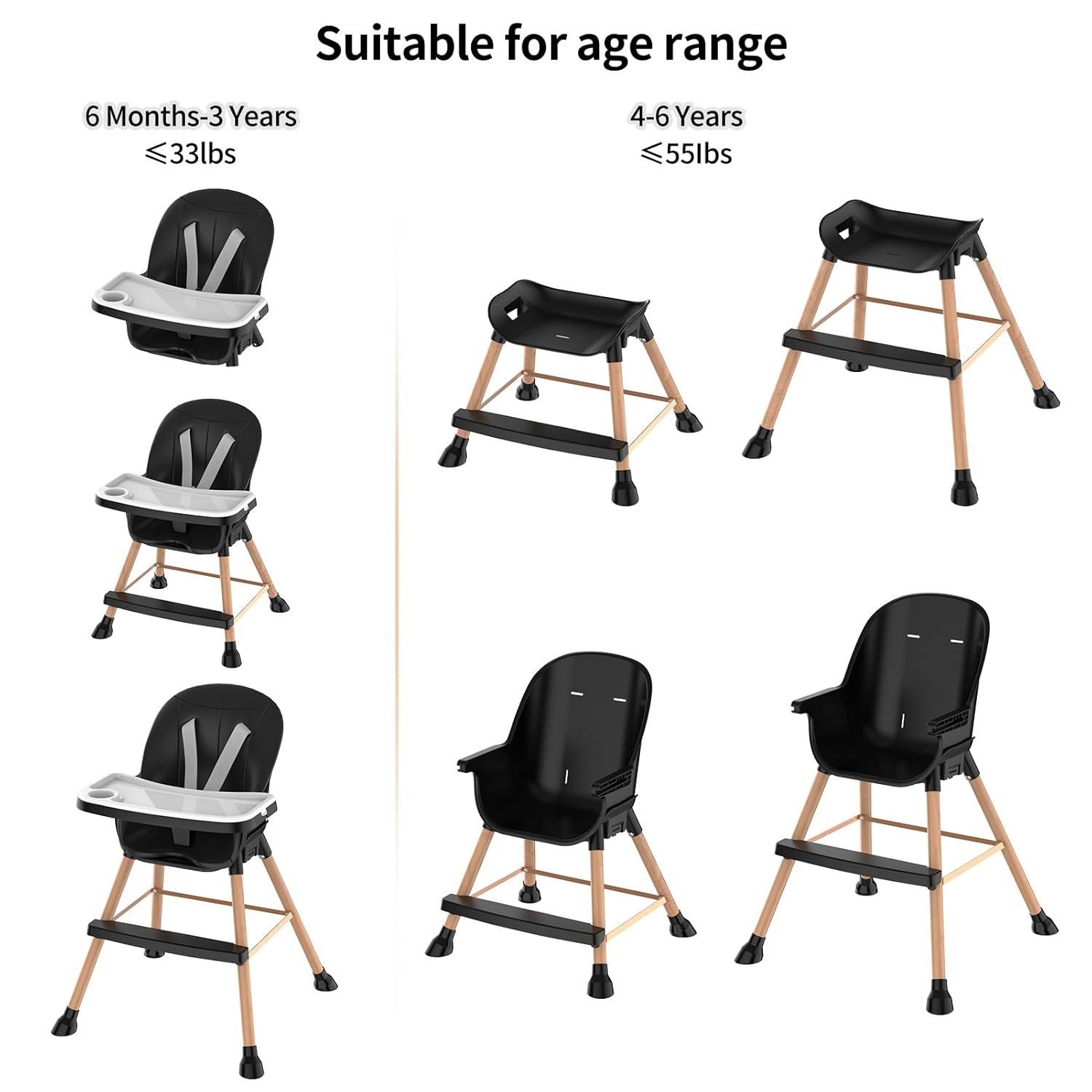 6 and 1 function: infant high chair with 6 and 1 function can be easily converted into a normal infant high chair, infant feeding chair or toddler chair, fully meet the needs of the different stages of the baby’s 6-72 months, accompanied by the baby’s growthSelected materials: High chair is made of plastic PU cushion and 13.8 inches seat width, giving your baby a comfortable experience!Non-slip design: The legs of the chair have been fitted with non-slip rings to ensure stability. Stable A-shape structure and sturdy support legs ensure safety during use.3. Non-slip design: The legs of the chair have been fitted with non-slip rings to ensure stability. Stable A-shape structure and sturdy support legs ensure safety during use.Modern design: Dining chairs have a modern design that is visually appealing for home use or as a gift.
