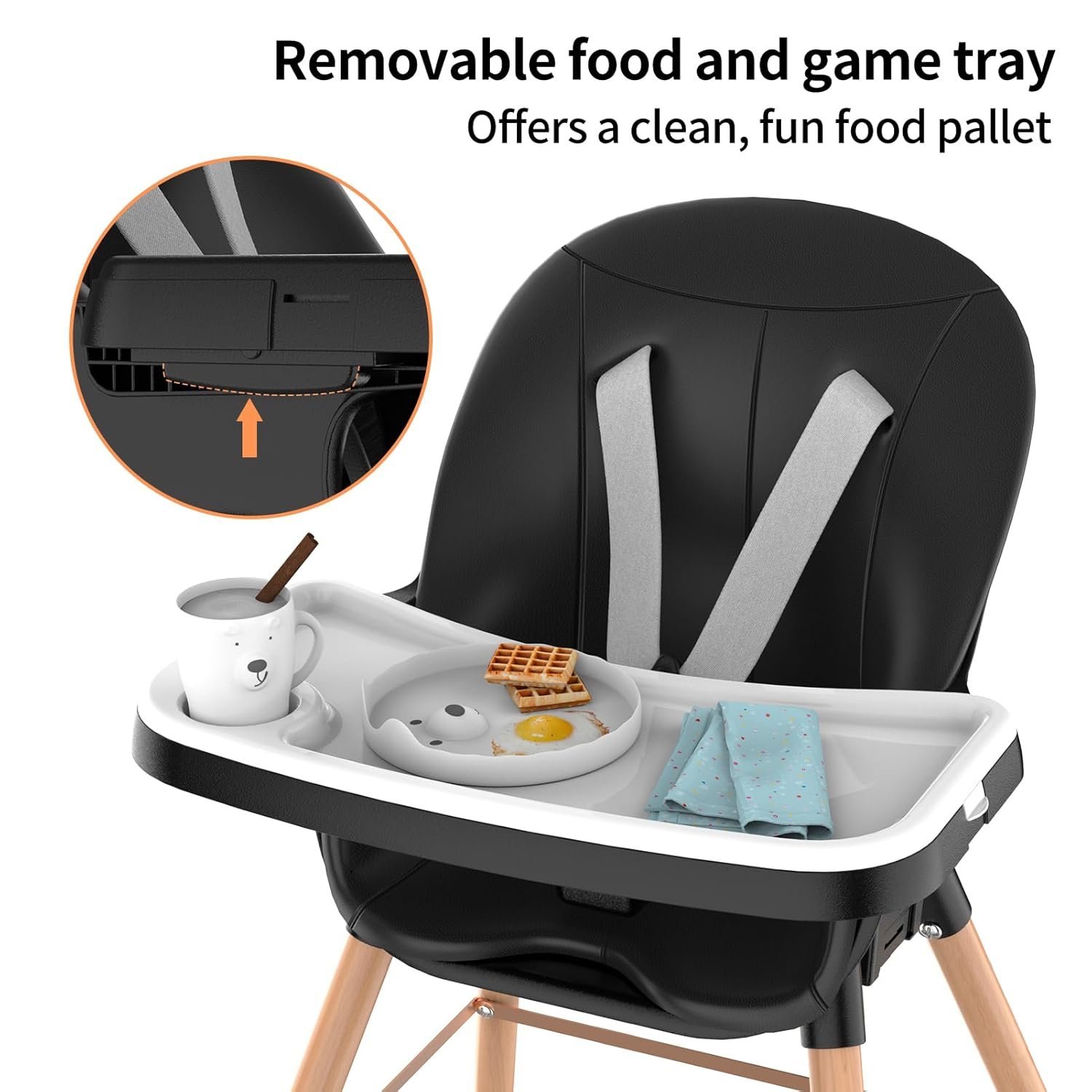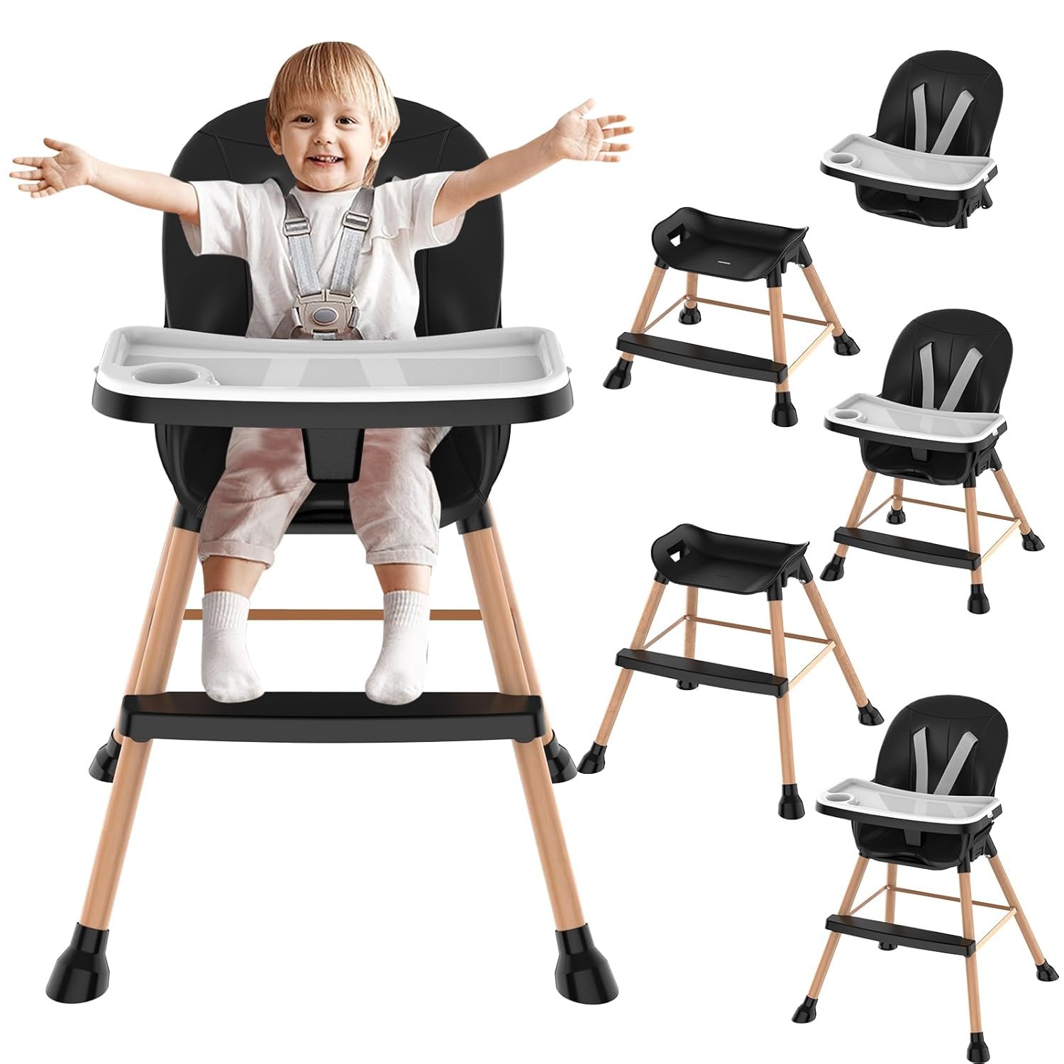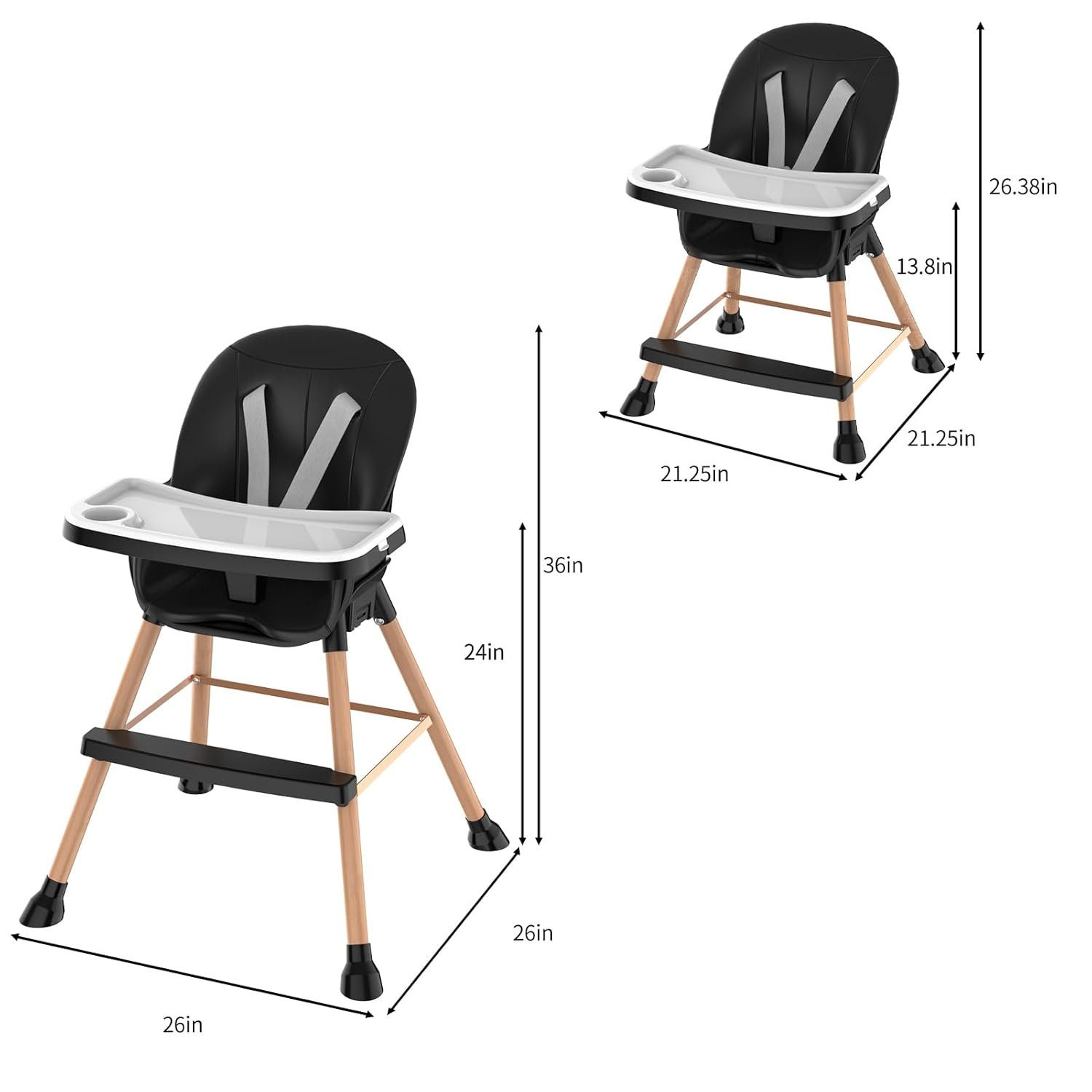 6 and 1 function: infant high chair with 6 and 1 function can be easily converted into a normal infant high chair, infant feeding chair or toddler chair, fully meet the needs of the different stages of the baby’s 6-72 months, accompanied by the baby’s growthSelected materials: High chair is made of plastic PU cushion and 13.8 inches seat width, giving your baby a comfortable experience!Non-slip design: The legs of the chair have been fitted with non-slip rings to ensure stability. Stable A-shape structure and sturdy support legs ensure safety during use.3. Non-slip design: The legs of the chair have been fitted with non-slip rings to ensure stability. Stable A-shape structure and sturdy support legs ensure safety during use.Modern design: Dining chairs have a modern design that is visually appealing for home use or as a gift.