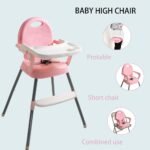 one button folding makes it easy to carry when out and about, and can be folded and placed in a corner when not in use at home to save space The trapezoidal stability structure makes the baby high chair more stable and is equipped with a 3-point safety belt to ensure that the baby does not tilt forward and fall over You can easily assemble and disassemble this high chair, you will definitely like it