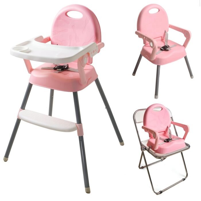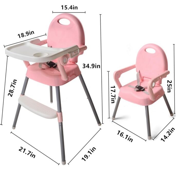 one button folding makes it easy to carry when out and about, and can be folded and placed in a corner when not in use at home to save space The trapezoidal stability structure makes the baby high chair more stable and is equipped with a 3-point safety belt to ensure that the baby does not tilt forward and fall over You can easily assemble and disassemble this high chair, you will definitely like it