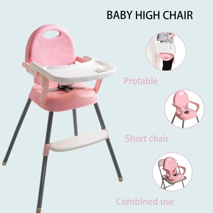 Baby high chair, multifunctional 3 in 1 adjustable high chair, removable 3-position adjustable tray, multipurpose 3-point safety harness