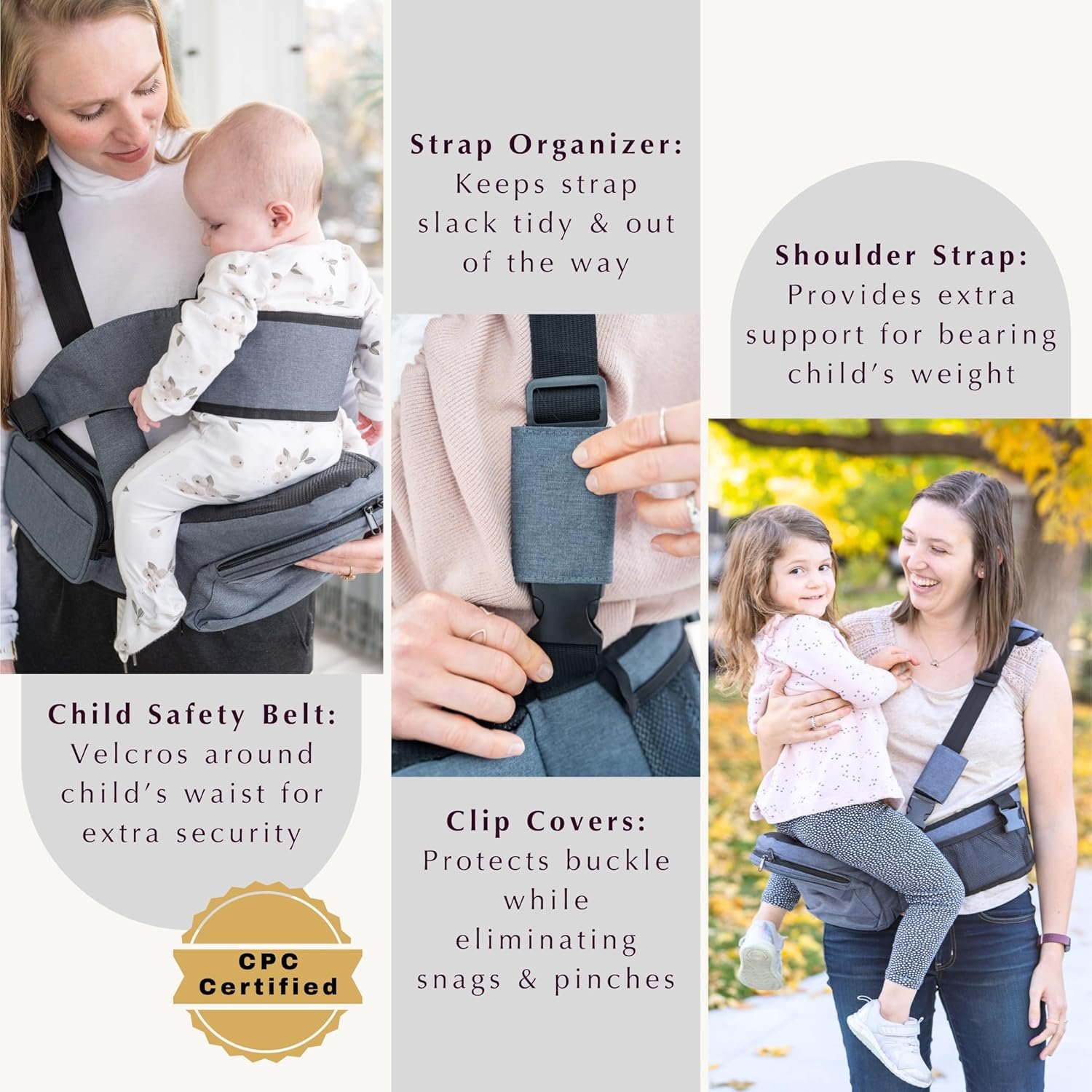 Versatile & Convenient: The baby carrier hip seat has an insulated bottle holder, a zipper and a mesh pocket for extra storage, a strap organizer to prevent tangling, and also a storage compartment. This carrier for toddlers 1-3 is a perfect blend of style and functionality.