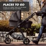 Forever air rubber tires with all-wheel suspension provide a comfortable stroll on any terrain