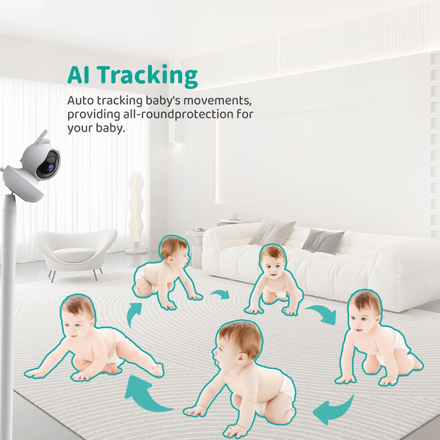 Baby’s Movement Auto Tracking —- This no wifi baby camera monitor lens pans 355° to capture all corners of a space, and tilts 110° to see floor to ceiling. When detecting baby’s movement, the video baby camera for room will automatically rotate to track the baby’s motion, which can greatly help you always pay attention to your baby’s activities.