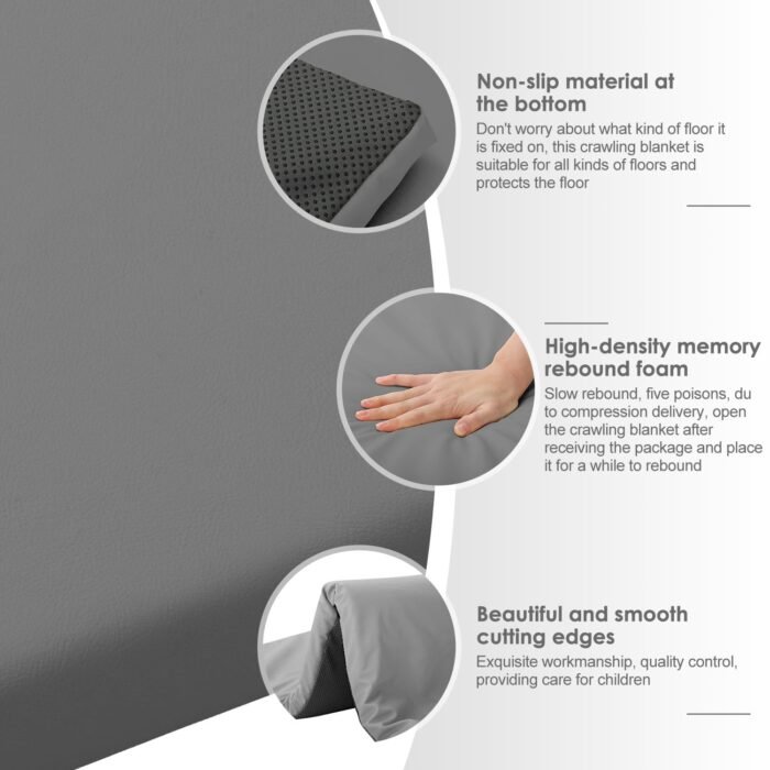 【Bottom anti-slip design】: The bottom of the toddler Floor Mat is made of anti-slip plastic dust cloth. The anti-slip design prevents displacement and slipping during children or pets’ play or normal daily use, and the Baby Playmat is suitable for many types of floors, including wood/marble/carpet, and will not damage the floor.
