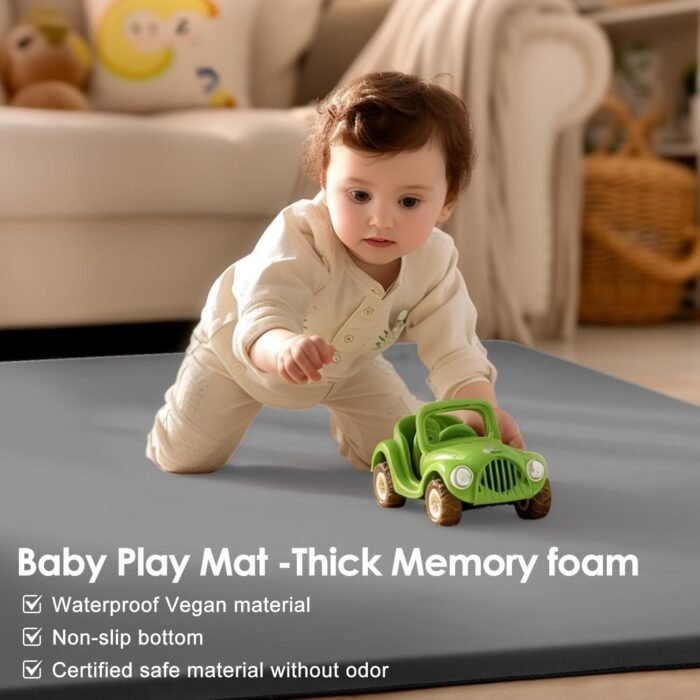 【Comfortable fabric】: The surface is made of Super Soft Vegan Leather–waterproof and scratch-resistant , which does not irritate the skin and does not fade, so that stains and water will not penetrate into the internal sponge. You only need to wipe the surface or vacuum to clean the crawling mat. When there is debris, vacuum quickly. If it is sewage, wet or sticky, you can use wet wipes or wet cloth to wipe it off