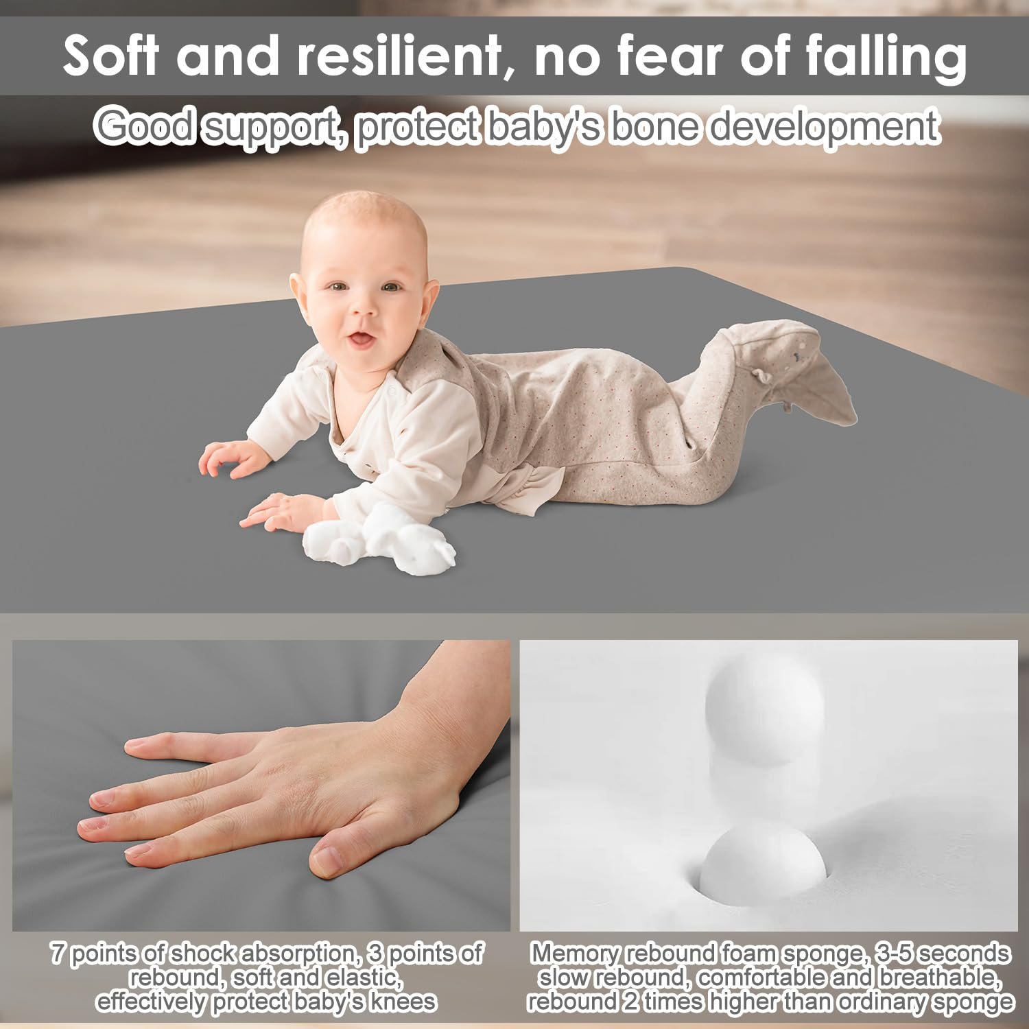 【Soft and thickened Play Mat】: Use high-quality, non-toxic high-density memory slow rebound sponge as the internal material, the thickness of the gBaby Play Mat is 1.57” (4cm), effectively protect the baby from falling when crawling, protect the knees, and feel great when stepping on barefoot, bringing fun experience to the baby’s play