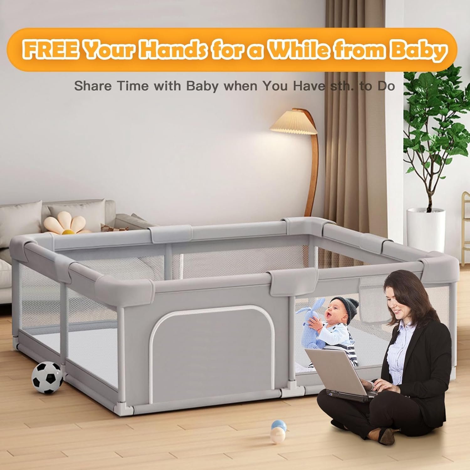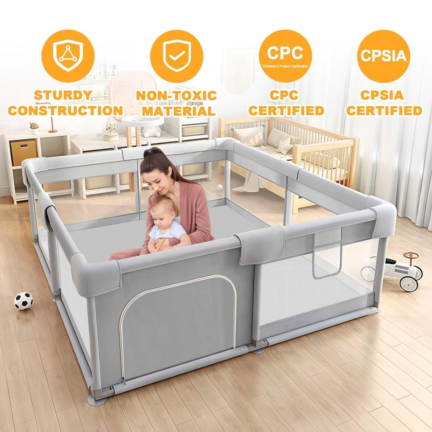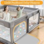 【Eco-friendly and Durable】Made of safe and eco-friendly materials, this playpen is not only gentle on your baby’s skin but also easy to clean and maintain. The durable fabric ensures that it lasts for years, providing a long-term investment for parents. What makes us standout from others is that our playpen has a separate thickened foam fabric cover,adds cushioning and reduces pain when baby knocked on the fence.