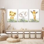 Customers find the wall art to be very cute and perfect for nurseries, with one mentioning it fits well with a safari-themed room. The print quality is great, and customers appreciate that it’s easy to frame and hang.