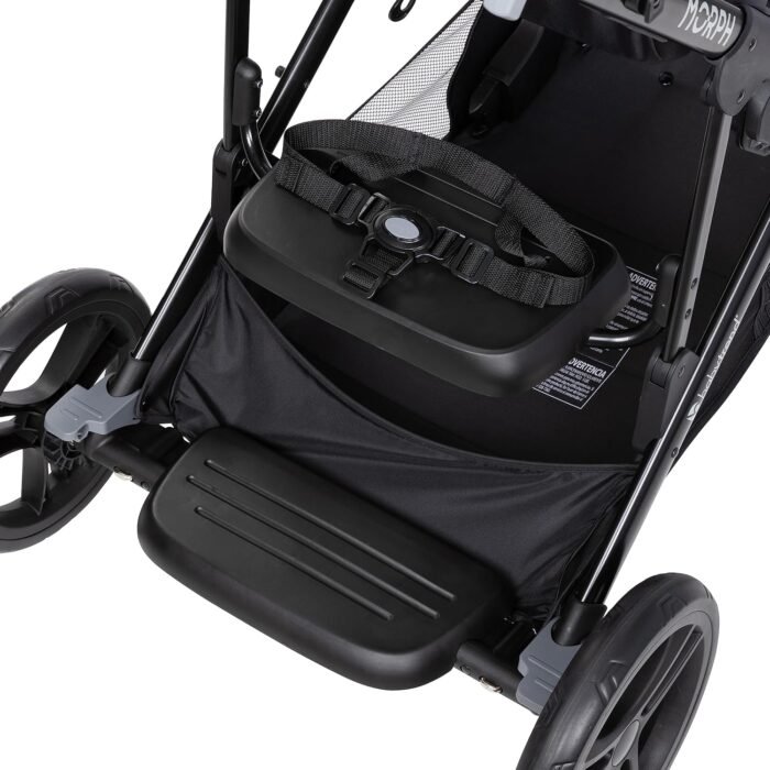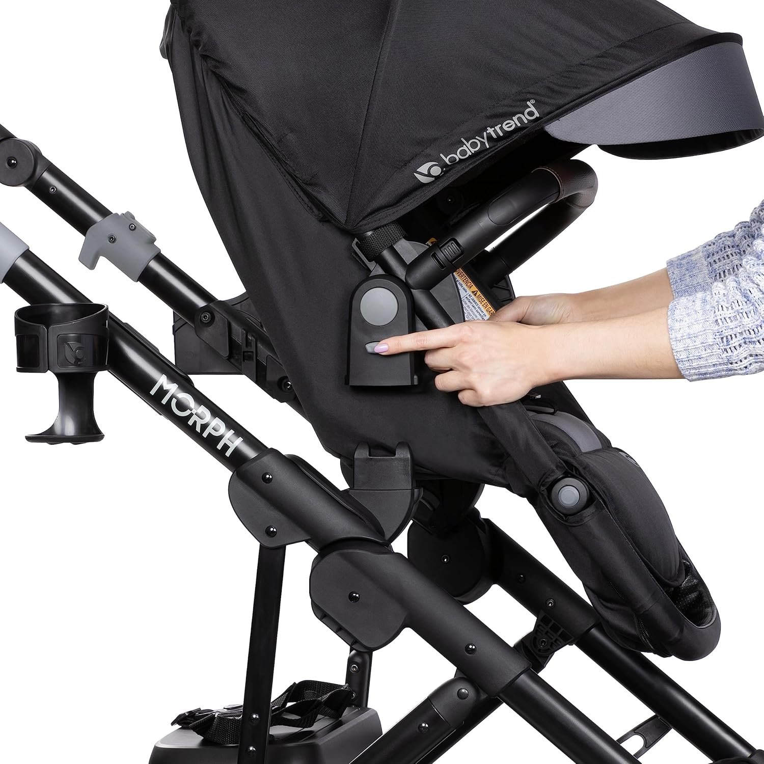 Stroll your way with the Baby Trend Morph Single to Double Stroller and EZ-Lift 35 Plus Infant Car Seat Travel System! This travel system offers almost unlimited options of stroller configurations to compliment every family outing. This single to double stroller is ideal for your growing family, and is currently the only single to double stroller on the market that has a built-in bench and standing board for unique riding options! The included adapters allow this stroller to transition into a double stroller that is adaptable for your family’s needs. The stroller seat is able to convert to a bassinet for ultimate comfort for your baby. The stroller footrest is adjustable and will extend the life of this product within your family. The Morph Single to Double stroller also offers innovative features for parents, such as the height adjustable handlebar and parent tray with a cup holder and cell phone compartment. The extra-large storage basket allows for hassle-free accessibility for all your travel essentials! This travel system includes the lightweight, ergonomic EZ-Lift 35 Plus Infant Car Seat. The Baby Trend EZ-Lift 35 PLUS Infant Car Seat provides parents with an easier way to LIFT and GRIP their infant car seat. Weighing at less than 8 lb, the EZ-Lift 35 PLUS allows parents to carry their infant car seat in a way that lessons the strain on their backs. This lifting technique has even be recommended by chiropractors as an ergonomically friendly method for carrying. The EZ-Lift also includes a multi-position base with level indicator as well as No-Twist Harness Indicator that allows parents to quickly see when the straps of the car seat are twisted. Safety-wise, the carrying handle of the EZ-Lift 35 PLUS acts as an anti-rebound bar when it is placed in forward position. Like all Baby Trend car seats, the EZ-Lift 35 PLUS Infant Car Seat meets and exceeds all federal safety standards.
