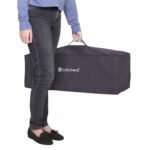 The Baby Trend Nursery Den Playard with Rocking Cradle offers your family various nap time and playtime options as your little one grows! The standalone rocking napper with a canopy and carry handle is the perfect portable option to keep your baby restful even when on the go. Diaper time is a breeze with the flip away changing table and diaper stacker for changing essentials. The removable full-size bassinet transforms into a convenient play time center as your child grows. The integrated Fold-Assist Technology includes a flex cord mechanism for effortless set-up and takedown of the playard frame. The soft tire wheels with brakes provide added mobility and stability wherever your Nursery Den may go. The compact fold easily fits into the included tote bag for easy travel.