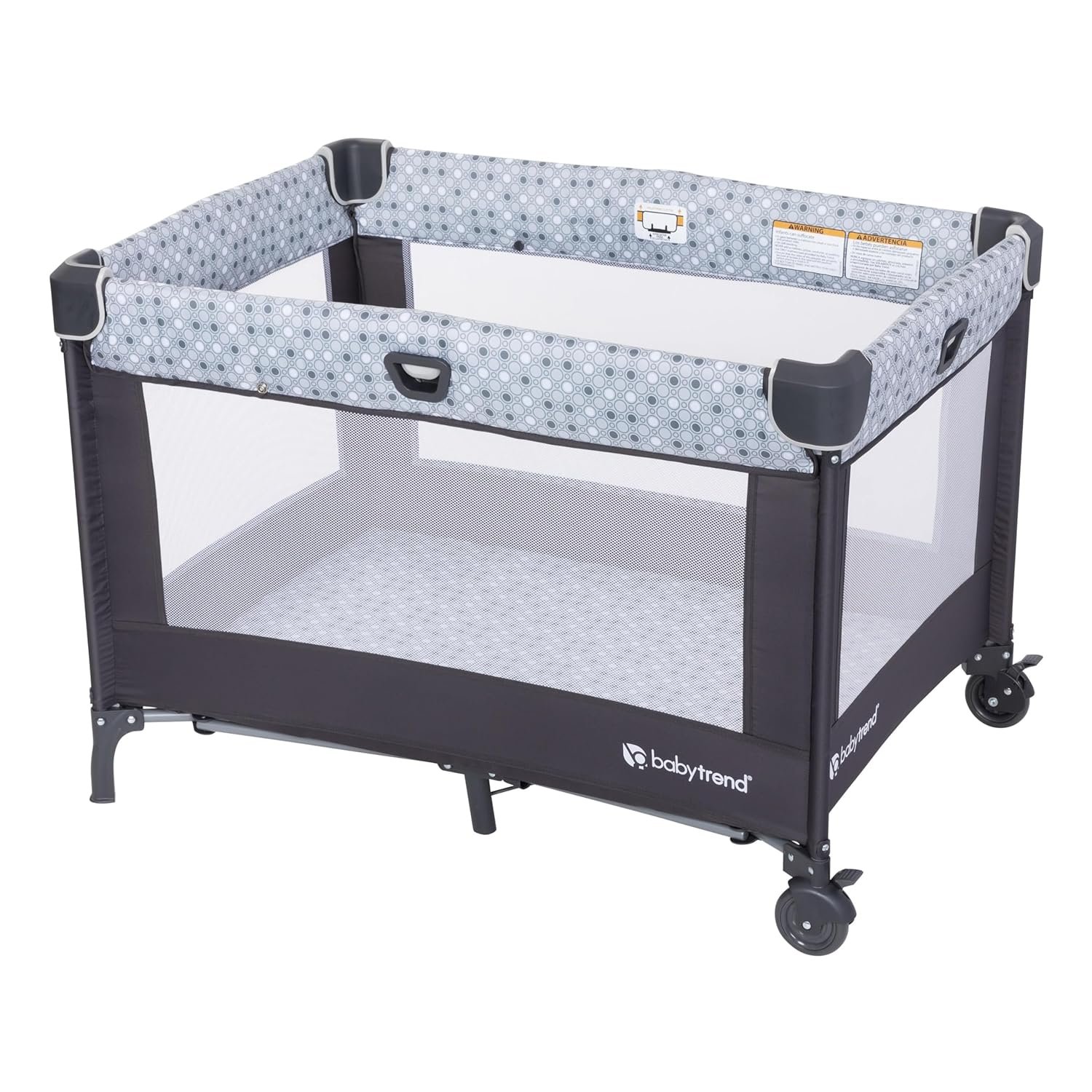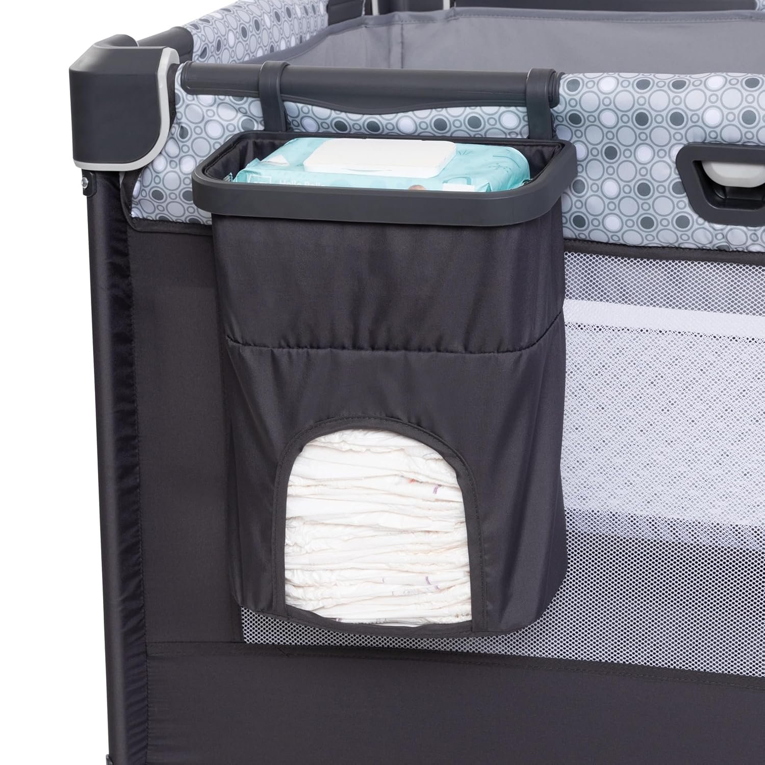 Full size bassinet can be removed to convert to playard mode