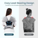 Ergonomic Design: It is different with traditional carriers, our baby carrier wrap is ergonomic design to support back and shoulders in using. It’s widely shoulder straps about this baby wearing wrap help evenly distribute the baby’s weight to reduce pain pressure about the back, shoulders, or waist for parents