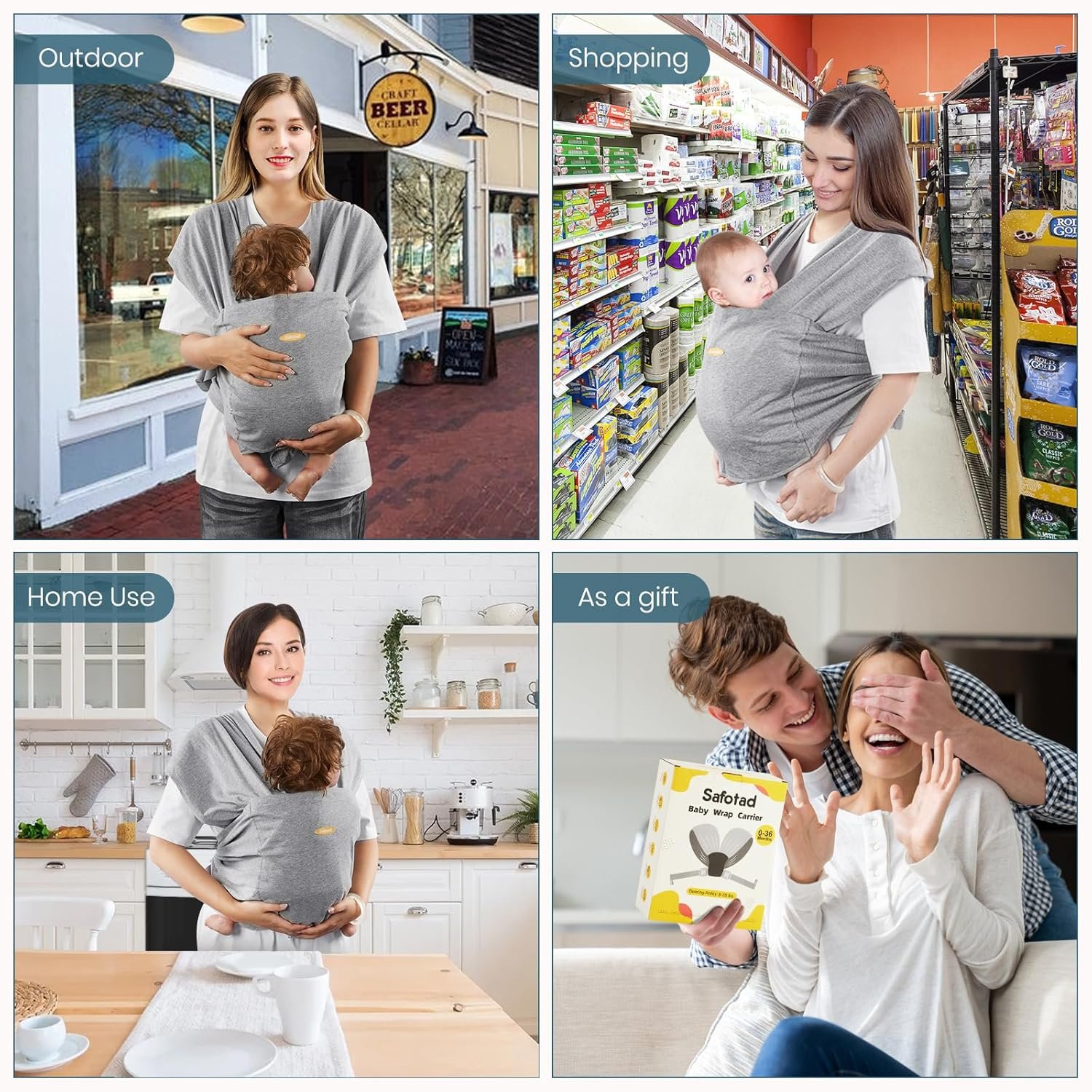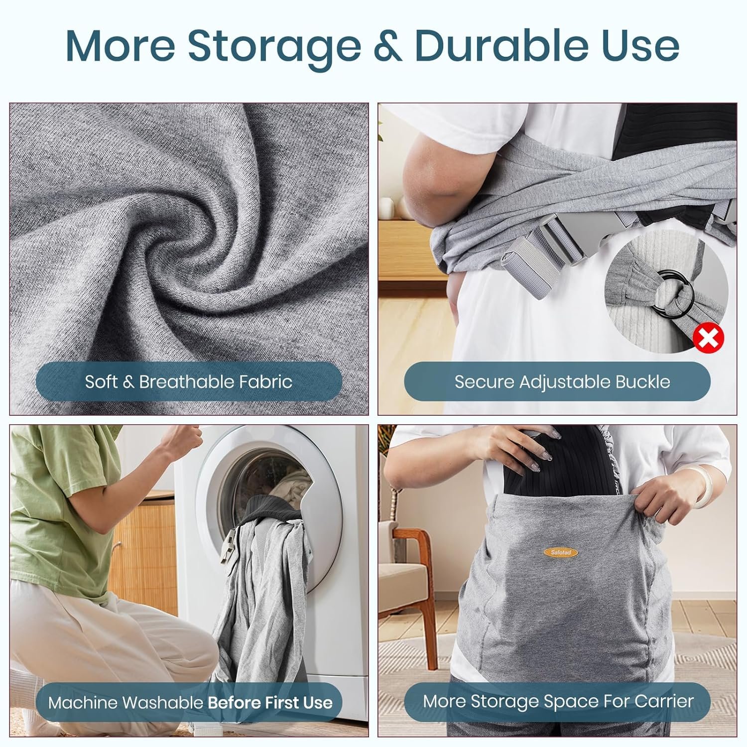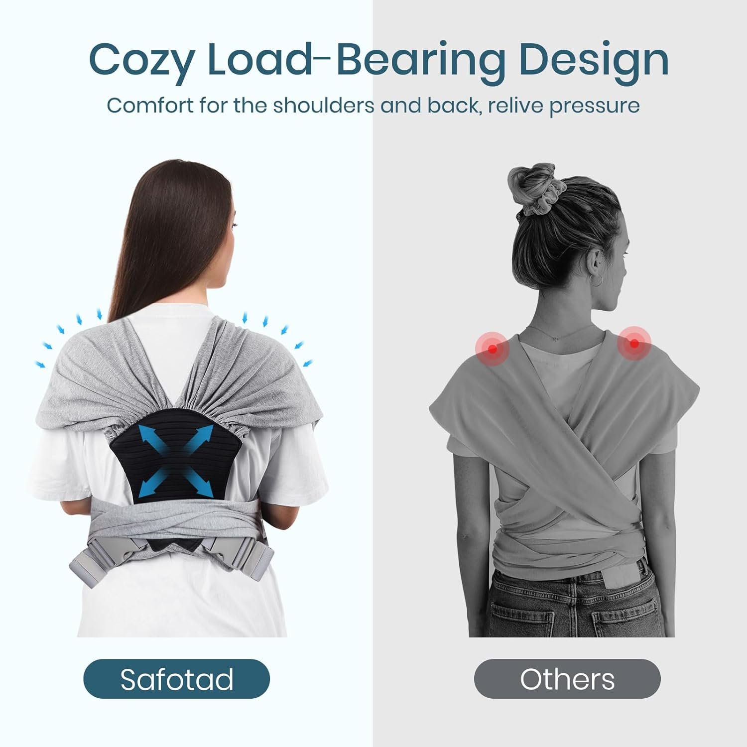 Adjustable Buckle Straps Design: Safotad baby wraps carrier is design an adjustable buckles, no tying to rings for easy to wear. You just slip it on over your head like a T-shirt, then secure your baby to adjust accordingly. It’s in order to save time for wear and hold baby close in your hug