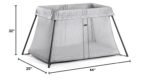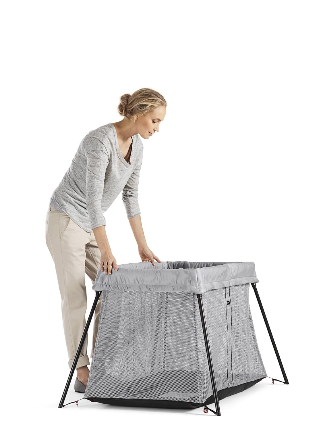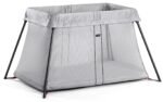 Baby Bjorn Travel Light Crib – Silver Lightweight and portable, the newly re-designed BabyBjorn Travel Crib Light provides your baby a safe, comfortable space for sleep or play at home or on the road. Especially convenient for busy parents, the Travel Crib Light sets up in just seconds and features a plush, cozy mattress and a sturdy base that does not wobble. Sets up and is ready to use in one simple movement. Compact and lightweight design (11 pounds) makes it easy to take with you. Insulated mattress keeps baby warm and comfortable. Waterproof, breathable mattress cover is machine washable. Net fabric side panels make it easy to keep an eye on baby. Product Dimensions: 19 x 5.5 x 23.5 inches Weight: 11 pounds. Do not place product near window where cords from blinds or drapes can strangle a child. The Travel Crib complies with the EN 716 safety standard for folding cribs and national fire safety requirements.